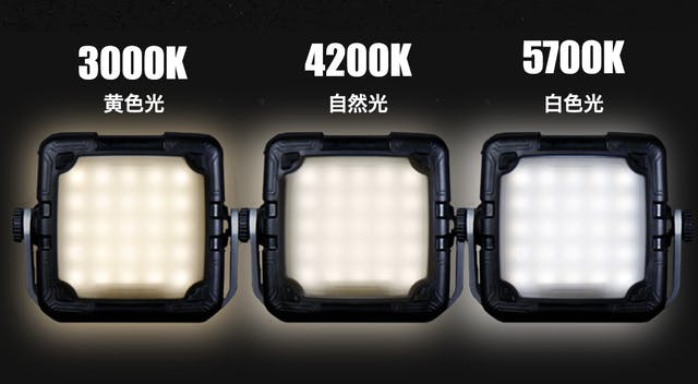 「3000K:黄色光」→「4200K:自然光」→「5700K:白色光」