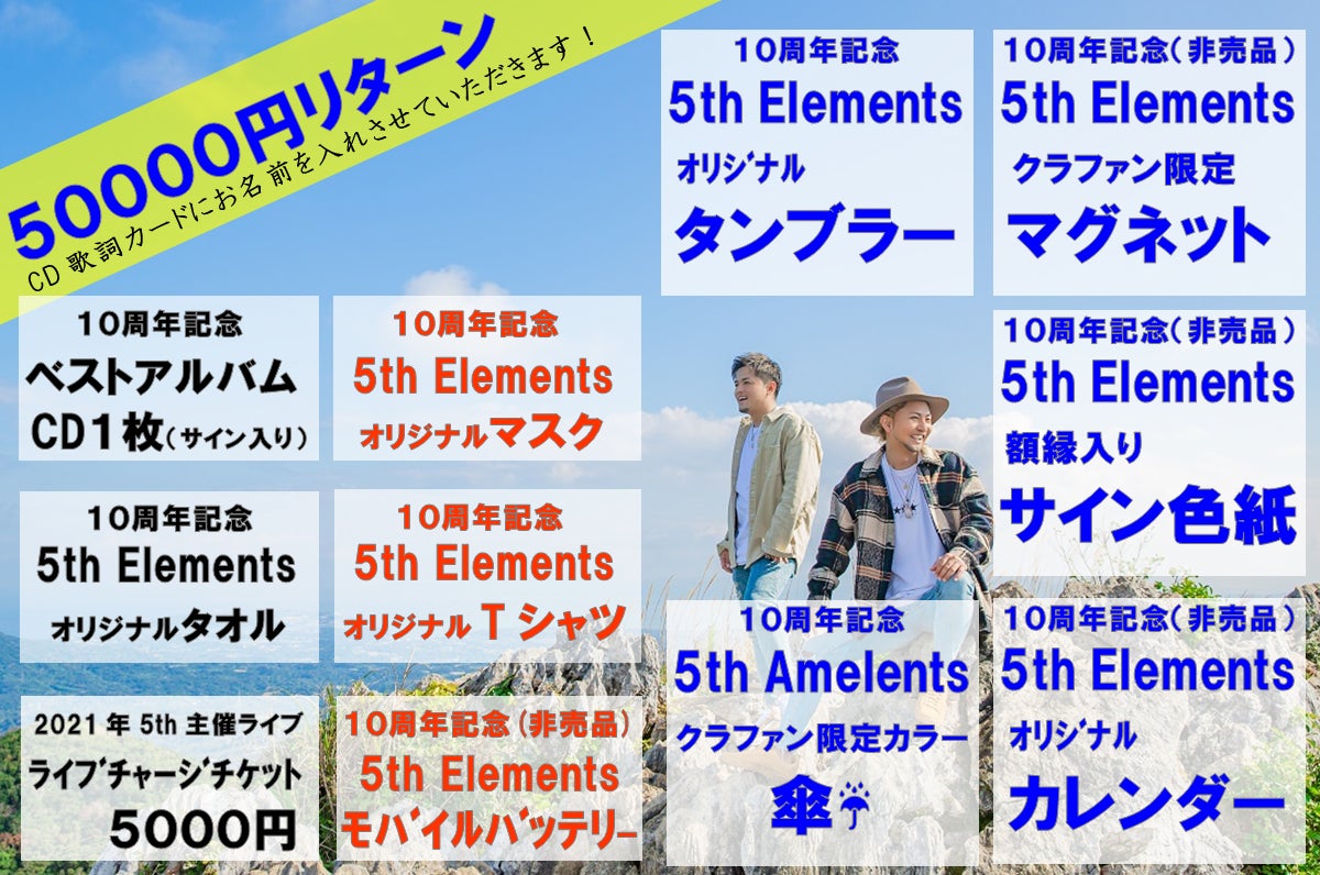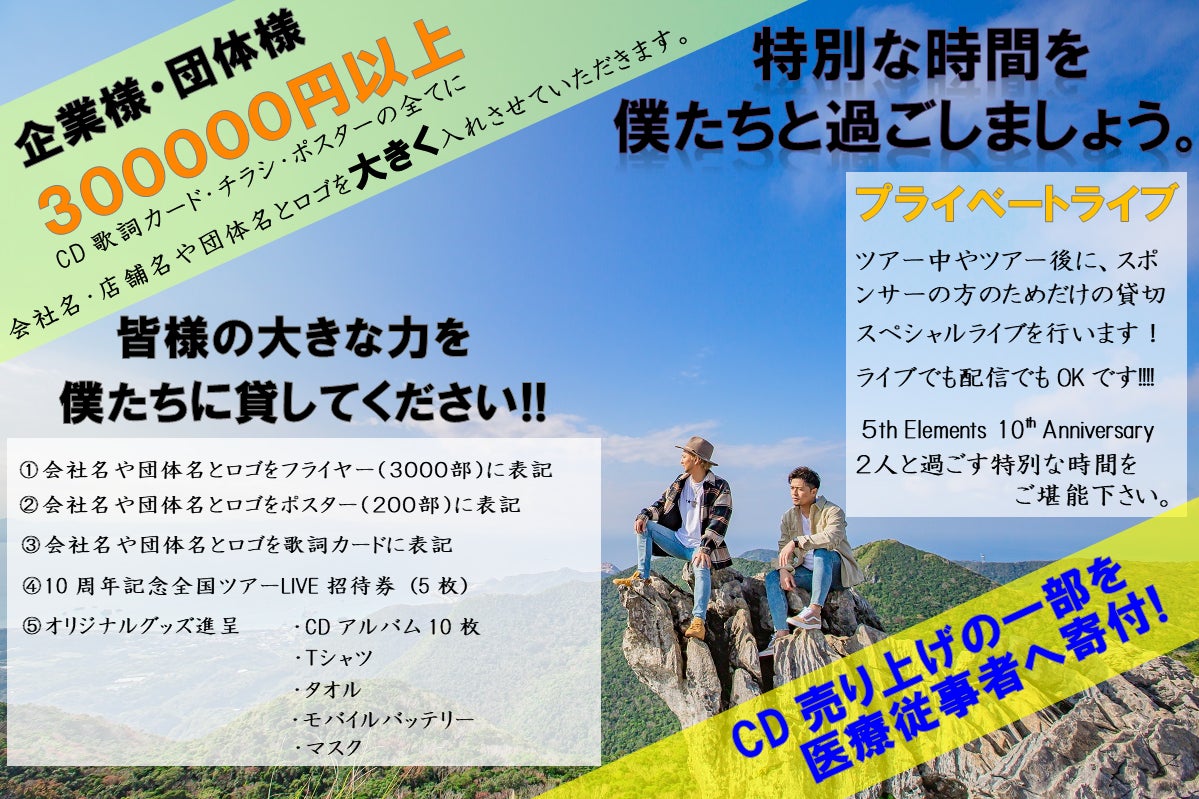 2021/10/26 19:00色々な方に支えられて、結成10周年を迎える事ができました。11年目からは音楽を通して、地域、社会の為になる事で音返ししていきたいと思ってます!11年目の5th Elementsもどうか引き続き応援宜しくお願い致します★★★★☆10周年記念アルバム「THE BEST」の売り上げの一部を今最前線で頑張って頂いてる医療従事者へ¥555555寄付させて頂きました。皆んな大変な時期ですが共に乗り越えましょう‼︎★★★★☆ もっと見る