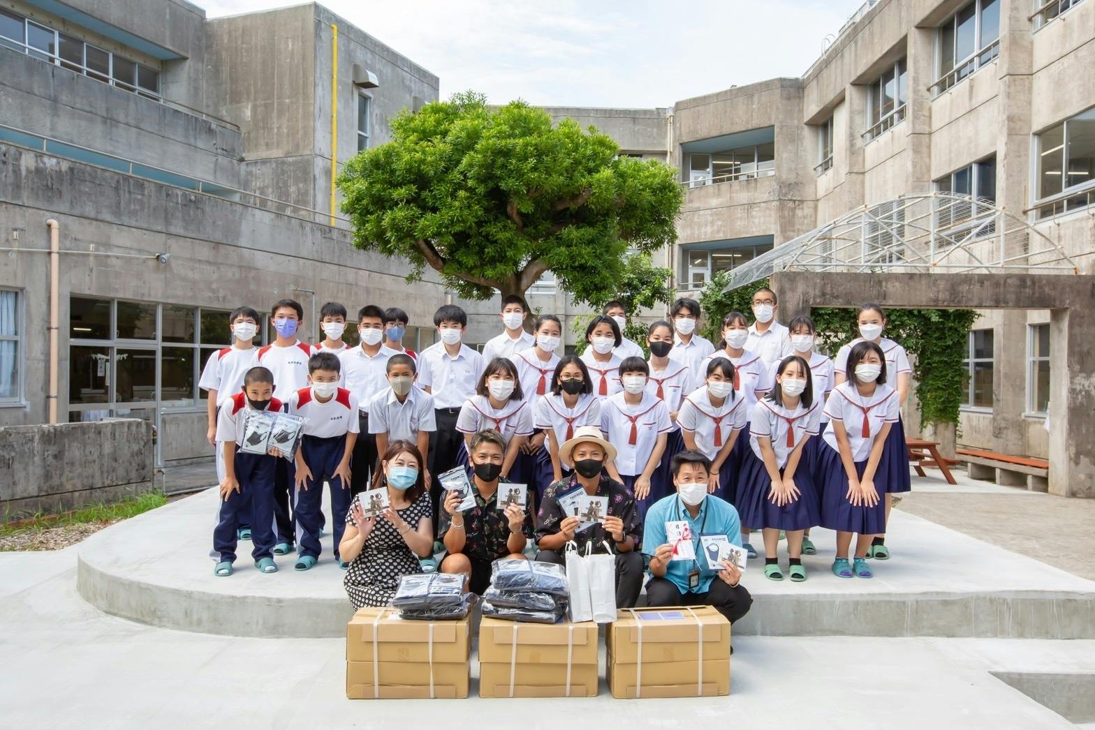 母校の普天間中学校全校生徒に、オリジナルマスク&10周年CDをプレゼントさせて頂きました生徒の皆さんも喜んでくれて嬉しかったです!
