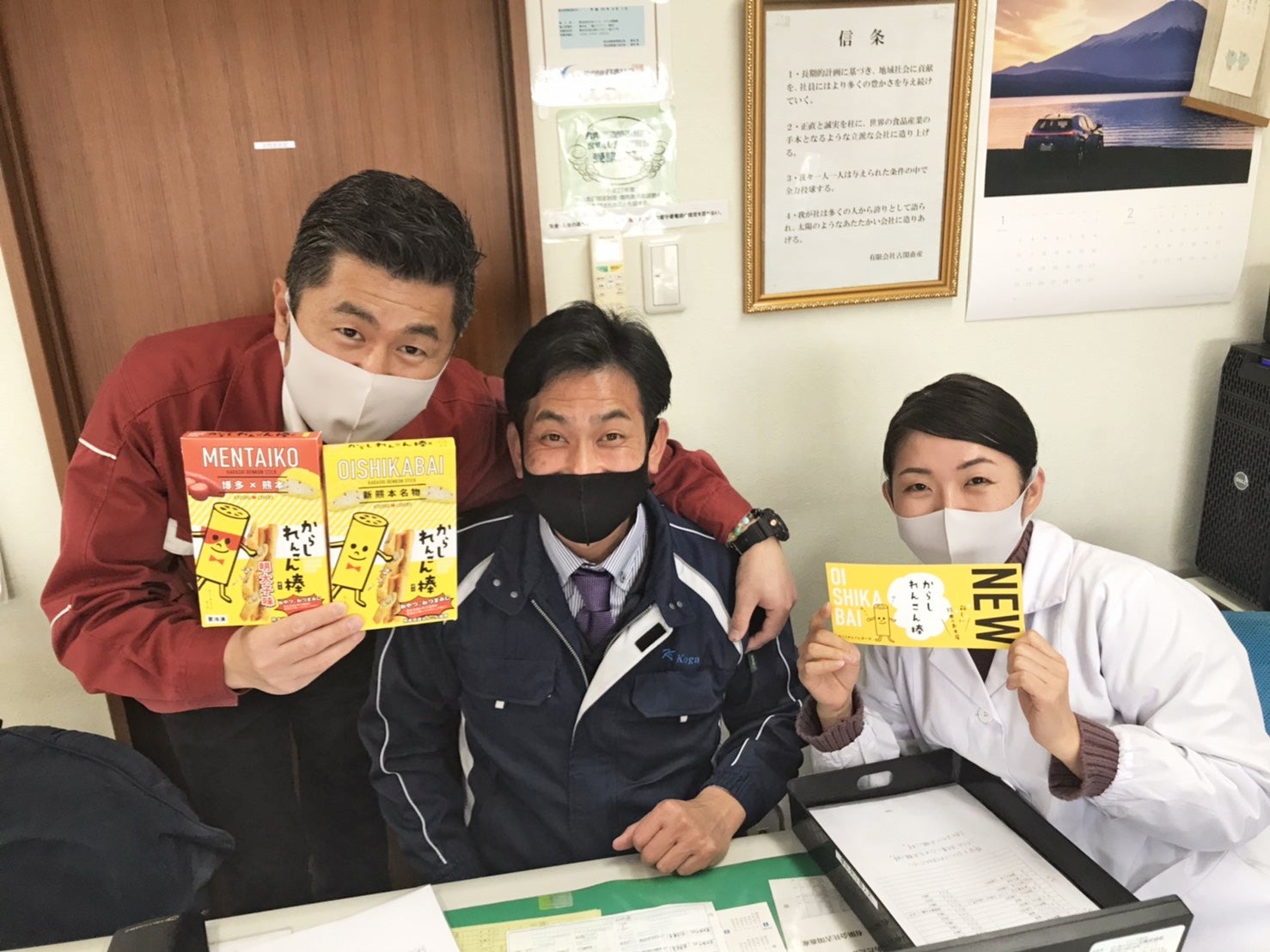 からしれんこん棒は、古閑畜産で頑張っている自慢のスタッフが丹精込めて加工しております。