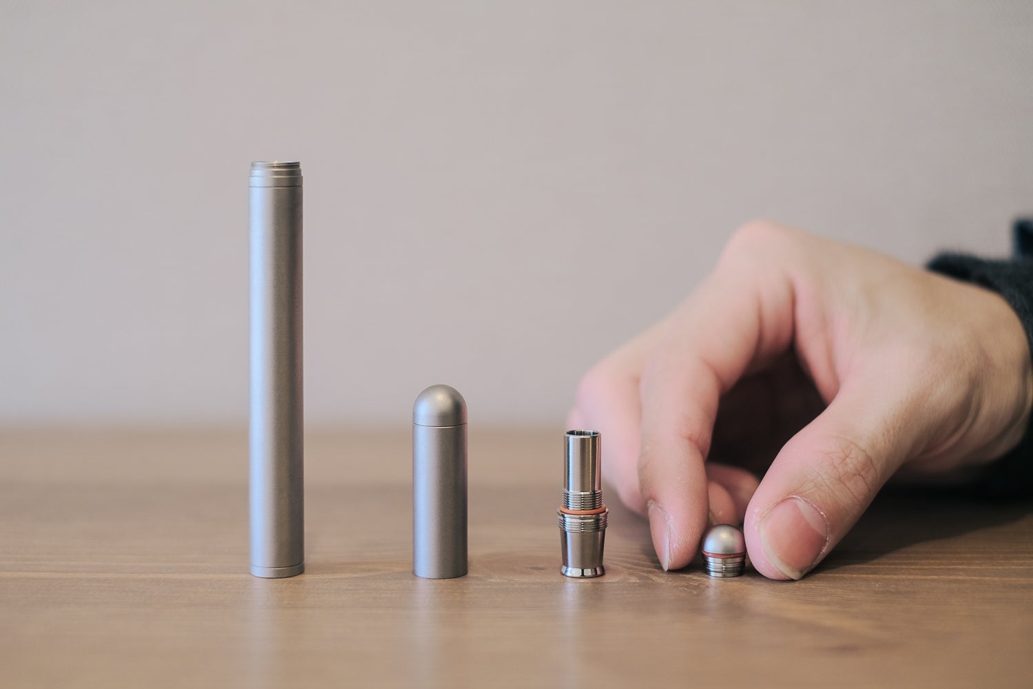 TP4を構成するキャップ、バレル、グリップ、エンドキャップの4つのパーツはもちろん全てチタン製。精密CNCと呼ばれる高精度な機械によって削り出されています。