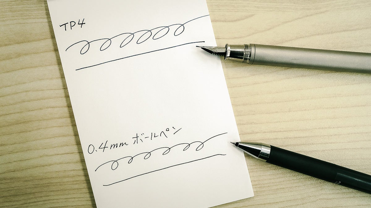 0.4mm (水性ゲルインク)のボールペンとTP4(F/細字)の比較画像