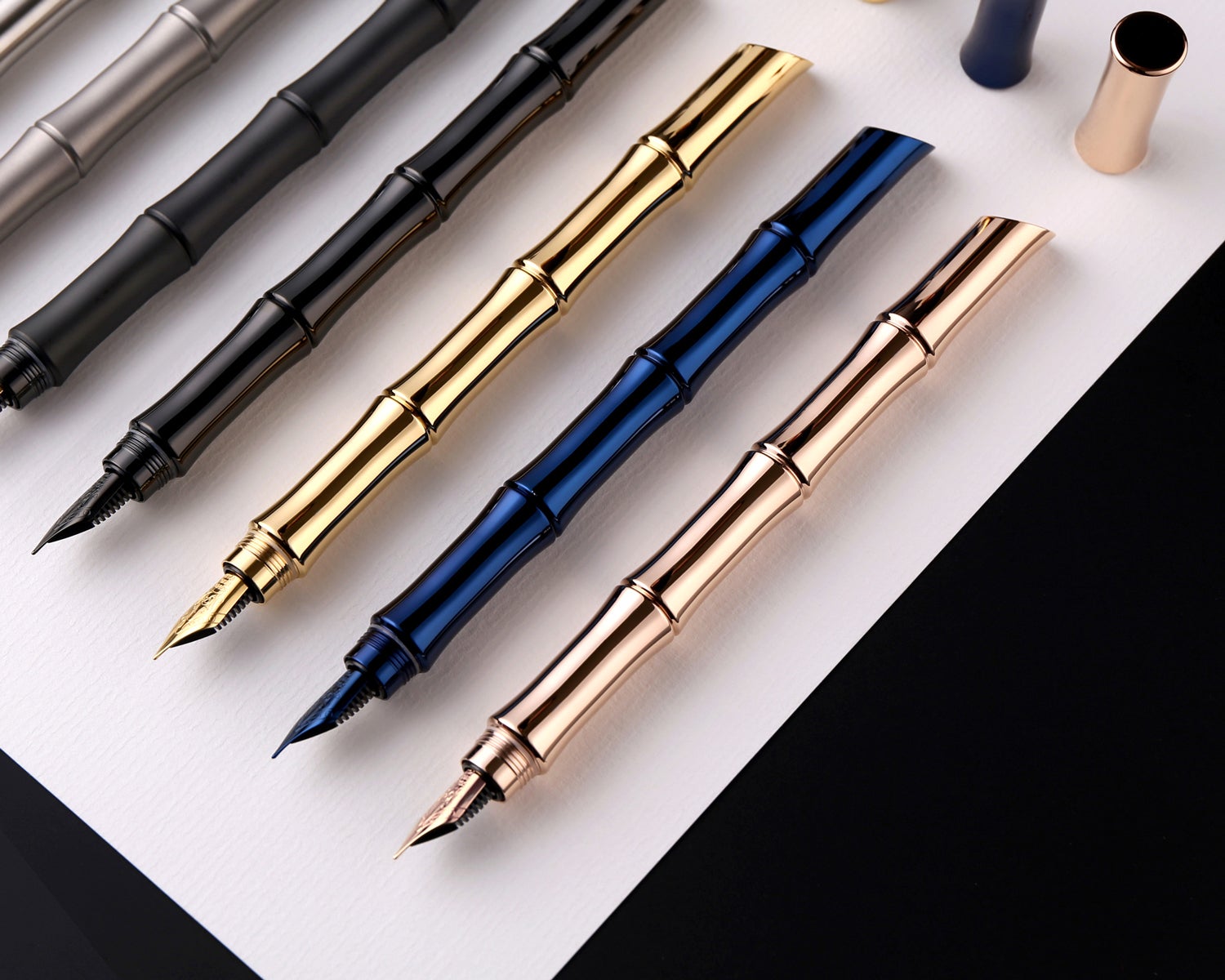 鏡面仕上げチタンは、ブラック、ゴールド、ブルー、ローズゴールドとカラーバリエーションも豊富。ペン先(ニブ)まで本体カラーと同一に仕上げ、高級感を追求しました。ブルーやゴールド、ローズゴールドなどあまりTimazeでは展開をしていないカラーも含んでいます。