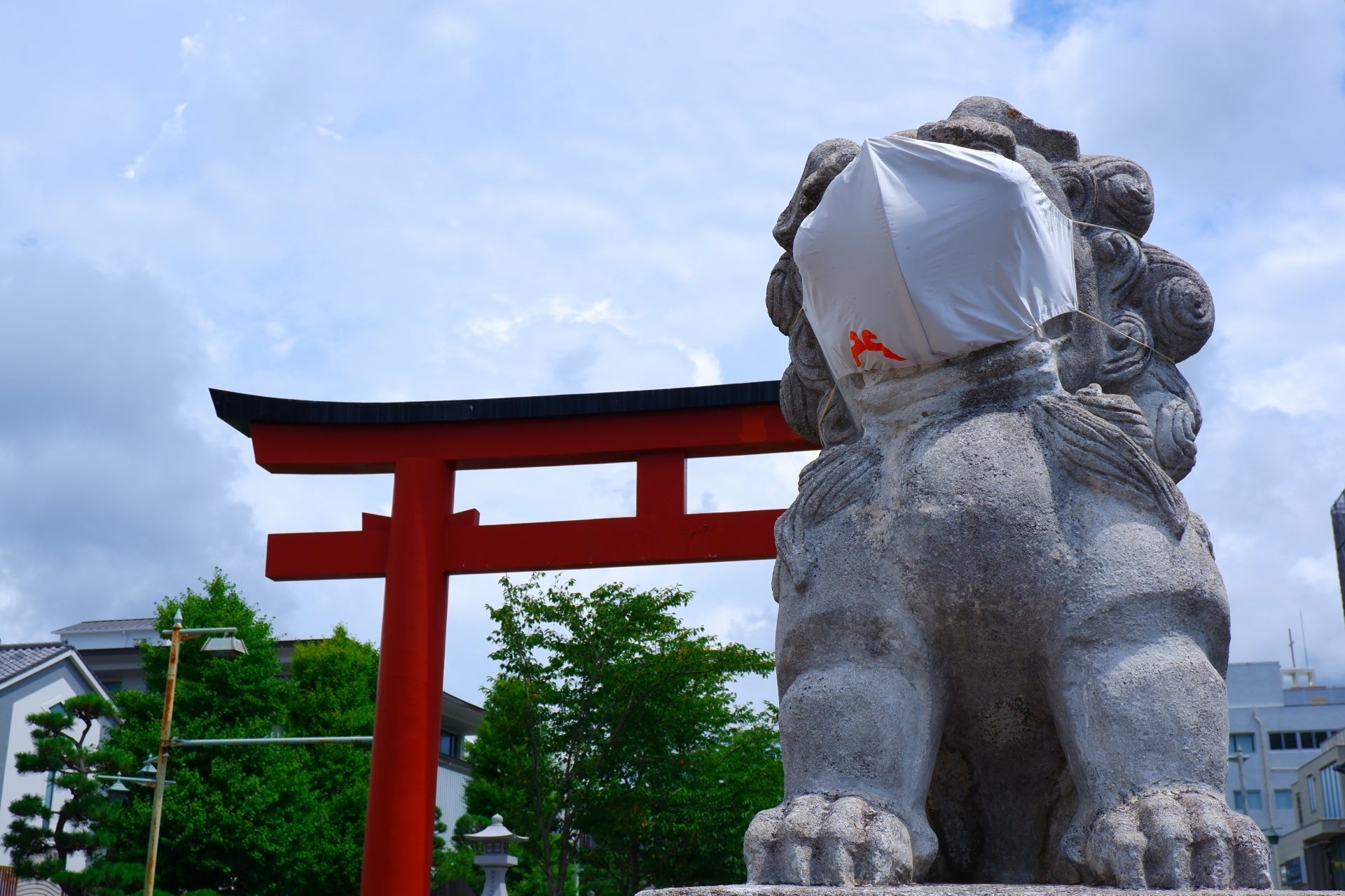 鶴岡八幡宮参道「段葛(だんかずら)」マスクをした狛犬