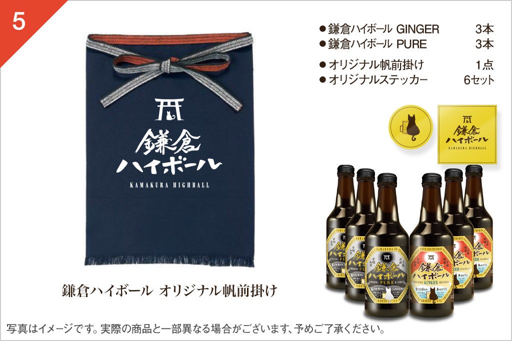 ◎【5】鎌倉ハイボールのお酒2種類を3本づつ + オリジナル帆前掛けを付けたセットです