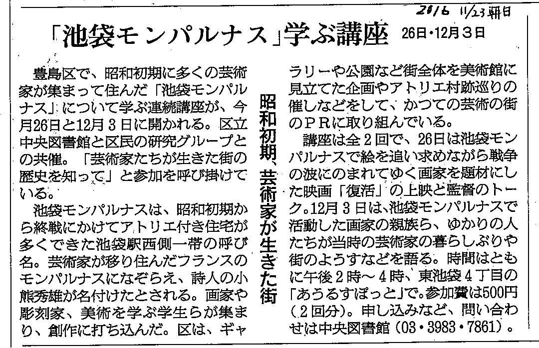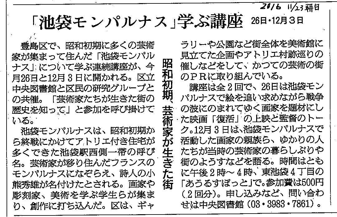 その池袋に、戦前そういう芸術家たちの町があったということは、驚きであると共に、感動的でさえありました。池袋モンパルナスのアトリエ村は戦後次第に失われていきましたが、フィールドワークをするうちに、私はそこで生きた芸術家たちのことを後世に語り継ぎたいと強く思い始めました。多くの人間が暮らした地域には、歴史(ドラマ)があります。それは変化しつつも堆積していく。今自分が暮している何ということもない日常には、実はとんでもない非日常が隠されていて、そういうものを見いだしてはある種の人間はドキドキするわけです。昨今お馴染みの、「ブラタモリ」などはその種の人々に受けている世界だと思います。