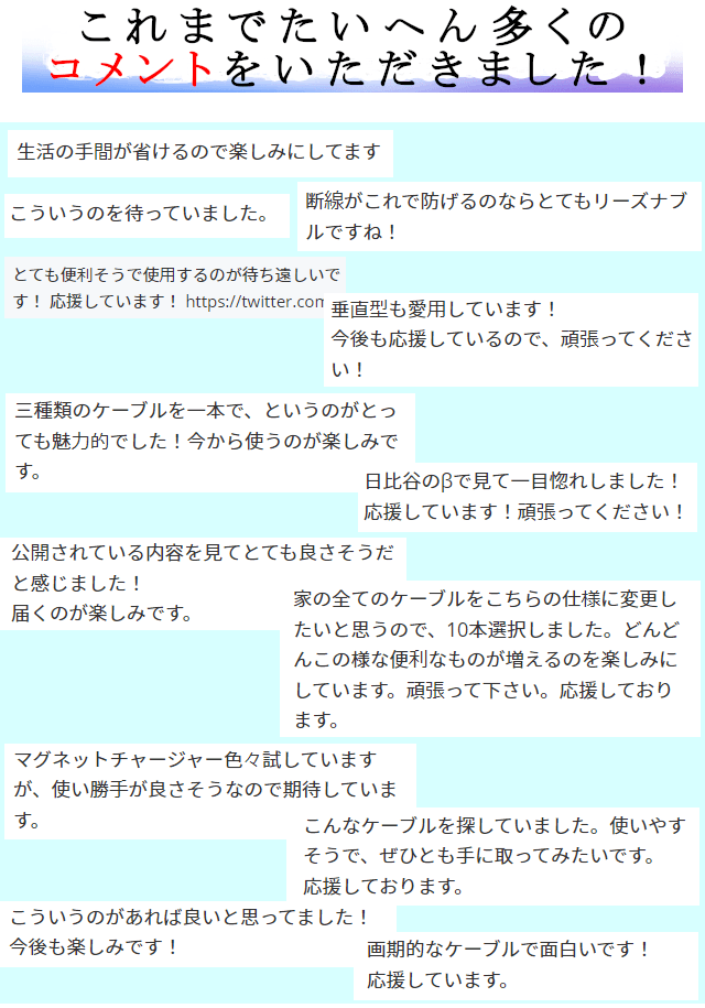 20代男性:理想のケーブル。家電量販店やコンビニでも買えるようになれば嬉しい。