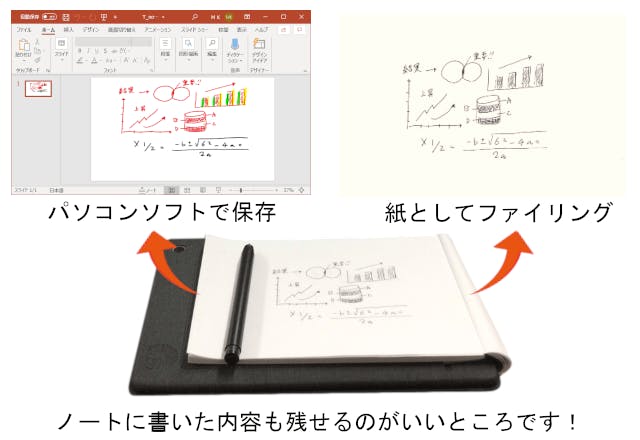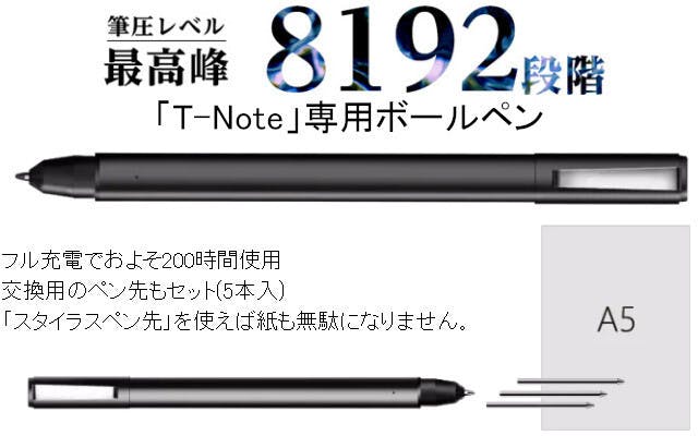 『T-Note』は専用ボールペンを使用し、まるでメモ帳やノートに書くようにパソコンやスマホに書き写すことができます。