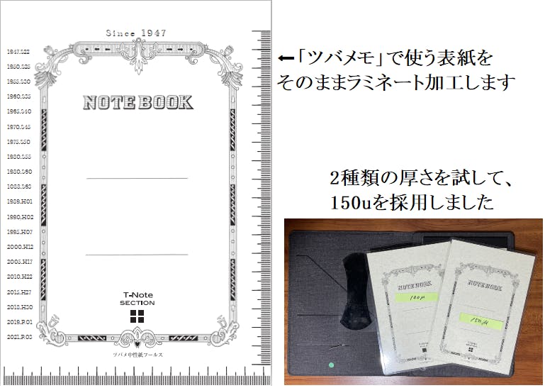オリジナル「ツバメモ」の表紙をラミネートすることで、「下敷き」としてお使いいただけたら、という物になります。