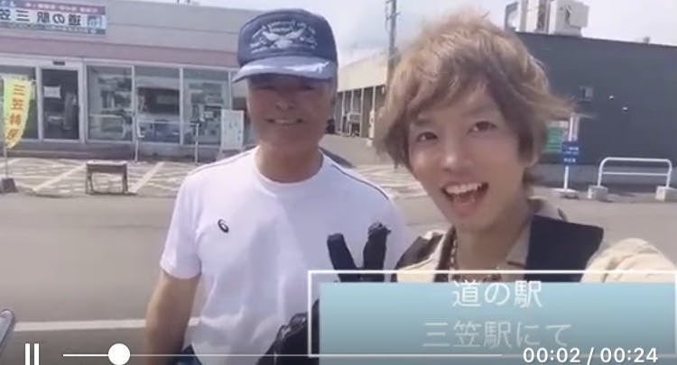 (道の駅 ウトナイ湖で珍しい蒸しとうきびを販売していたおじちゃんも応援してくれました)
