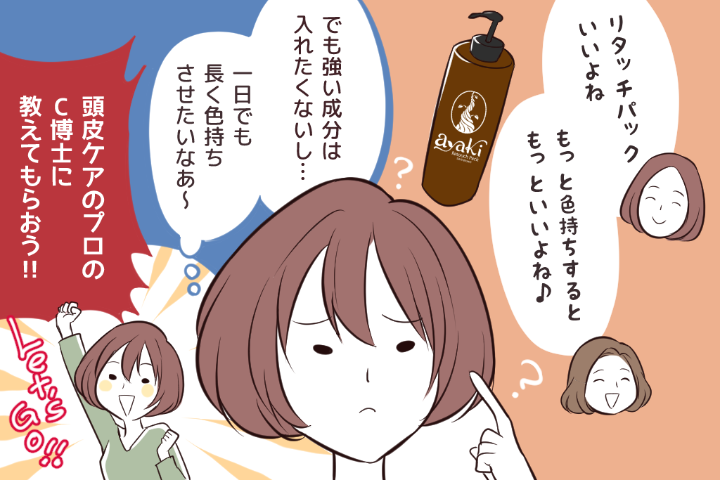 「リタッチパックに頭皮に優しい成分を追加したり、配合を変えることで色もちが良くできればいいのにな...」
