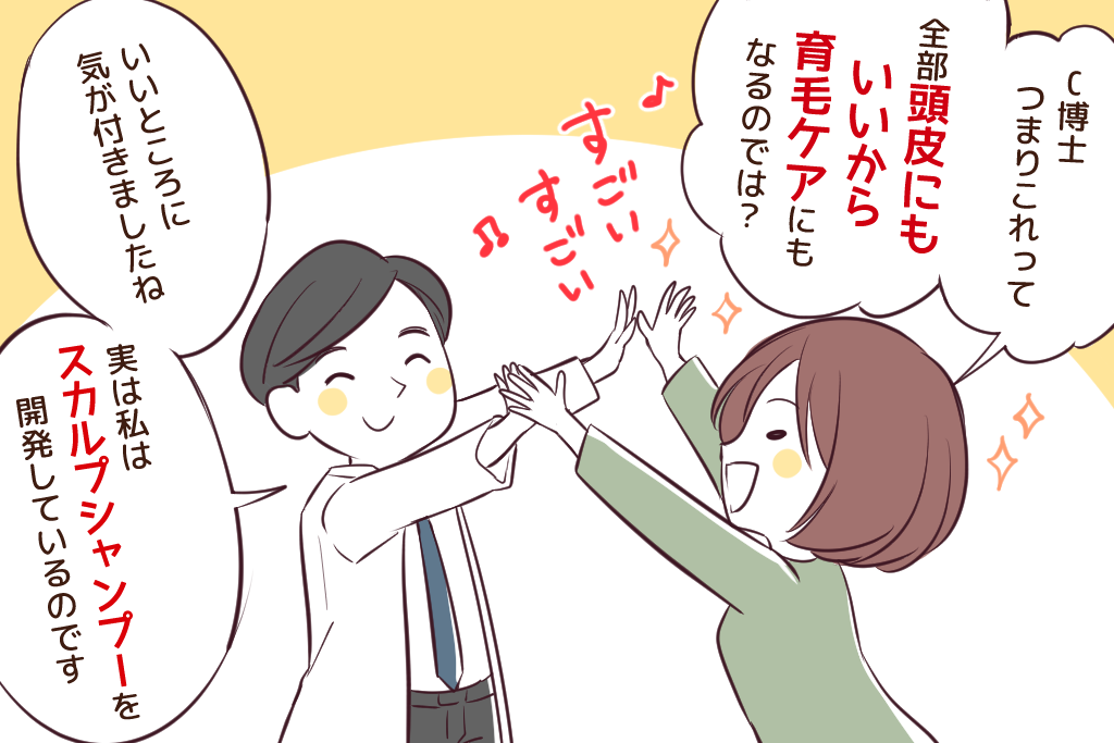 C博士からいただいたご提案はリタッチパックの品質改善ではなく、目からウロコの...シャンプーの開発でした...