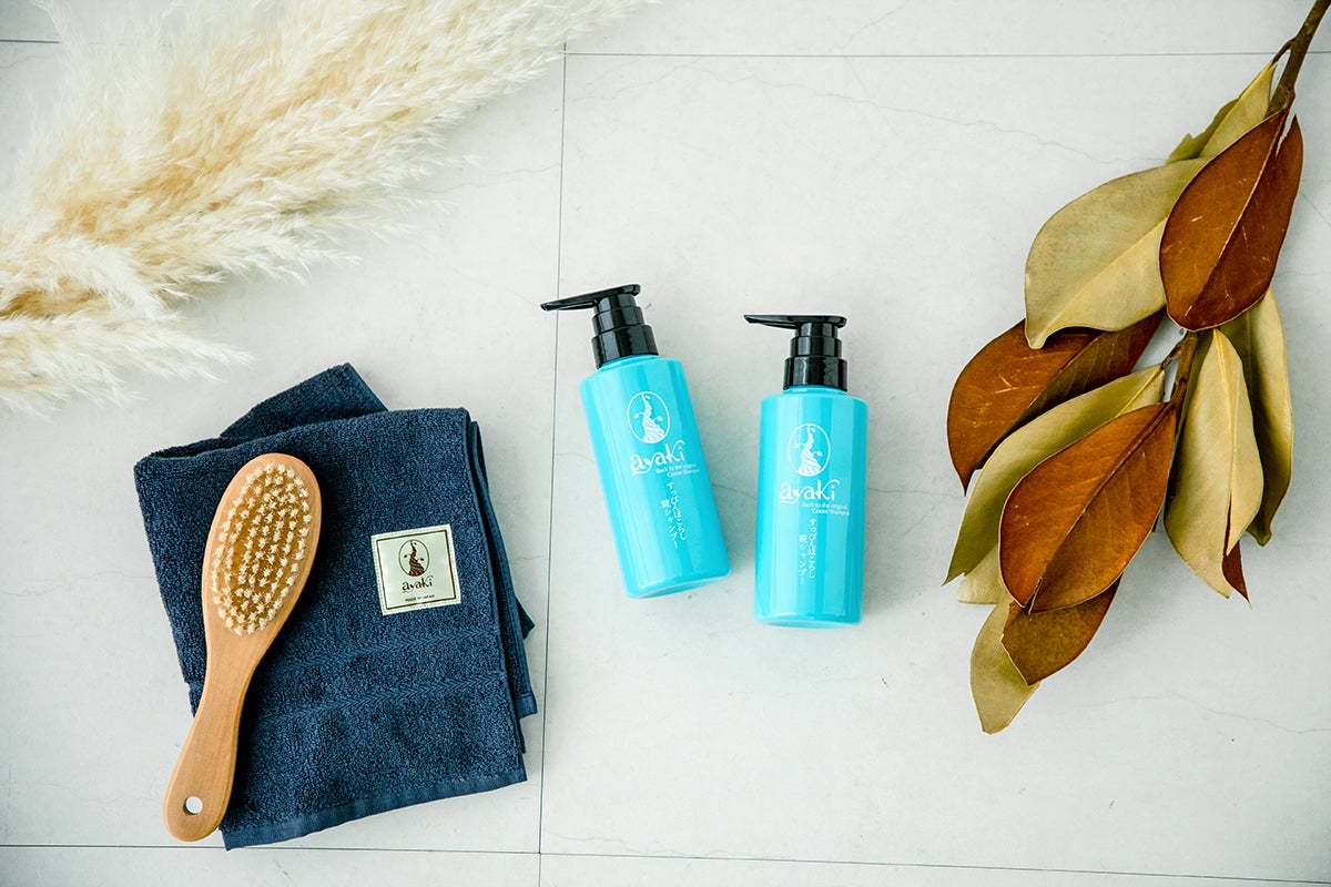 ○ayakiすっぴんほこらし糀シャンプー、ayakiリタッチパック+ヘアダイブラシをセットで割引