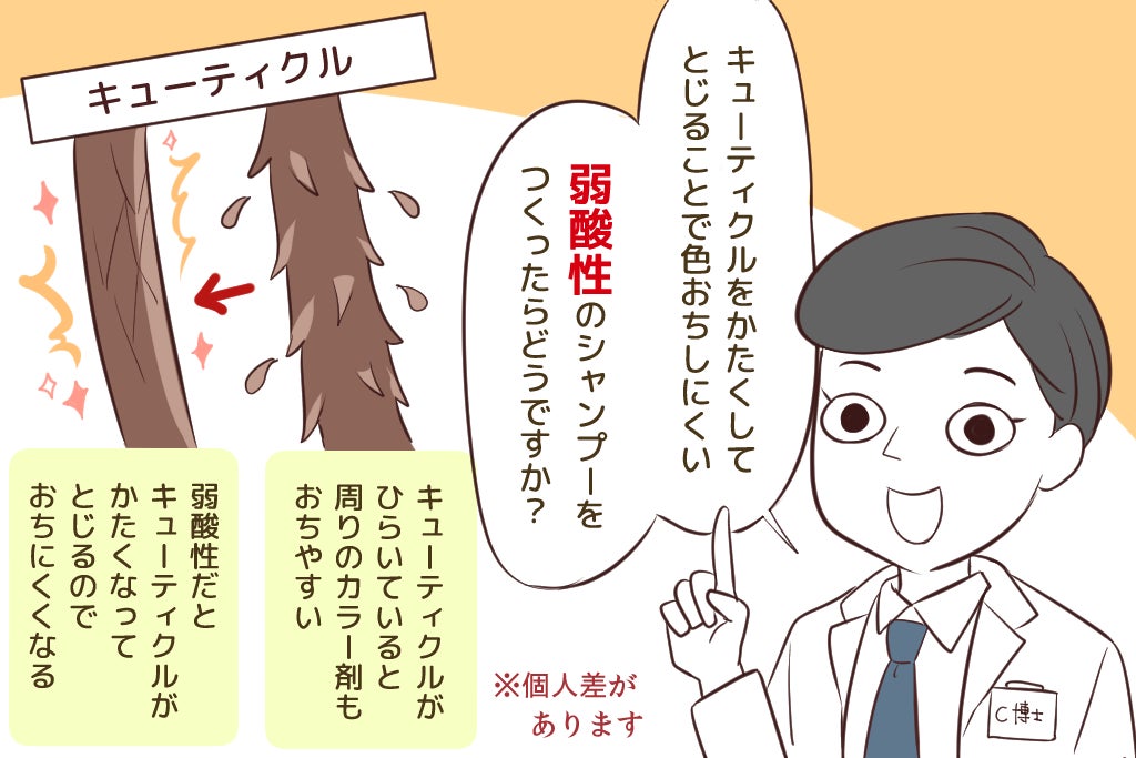 [1]弱酸性でキューティクルを硬くしてカラーの色を長持ちさせる