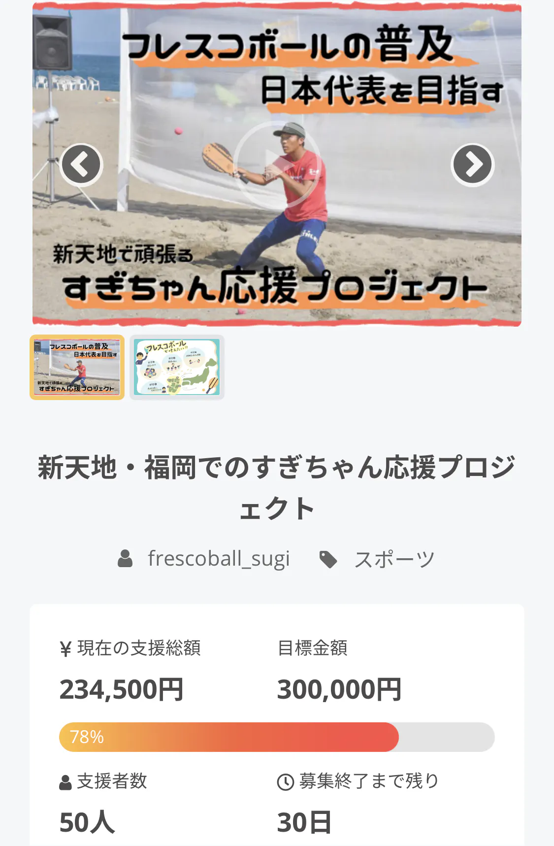 10日間という短い期間で、50人もの方が支援という形で応援して頂いていることが本当に信じられません。