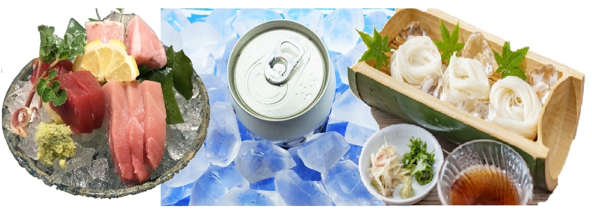 皿盛りした刺身やビール等の食品飲料が、食べ飲み干すまで保冷状態で保てます。