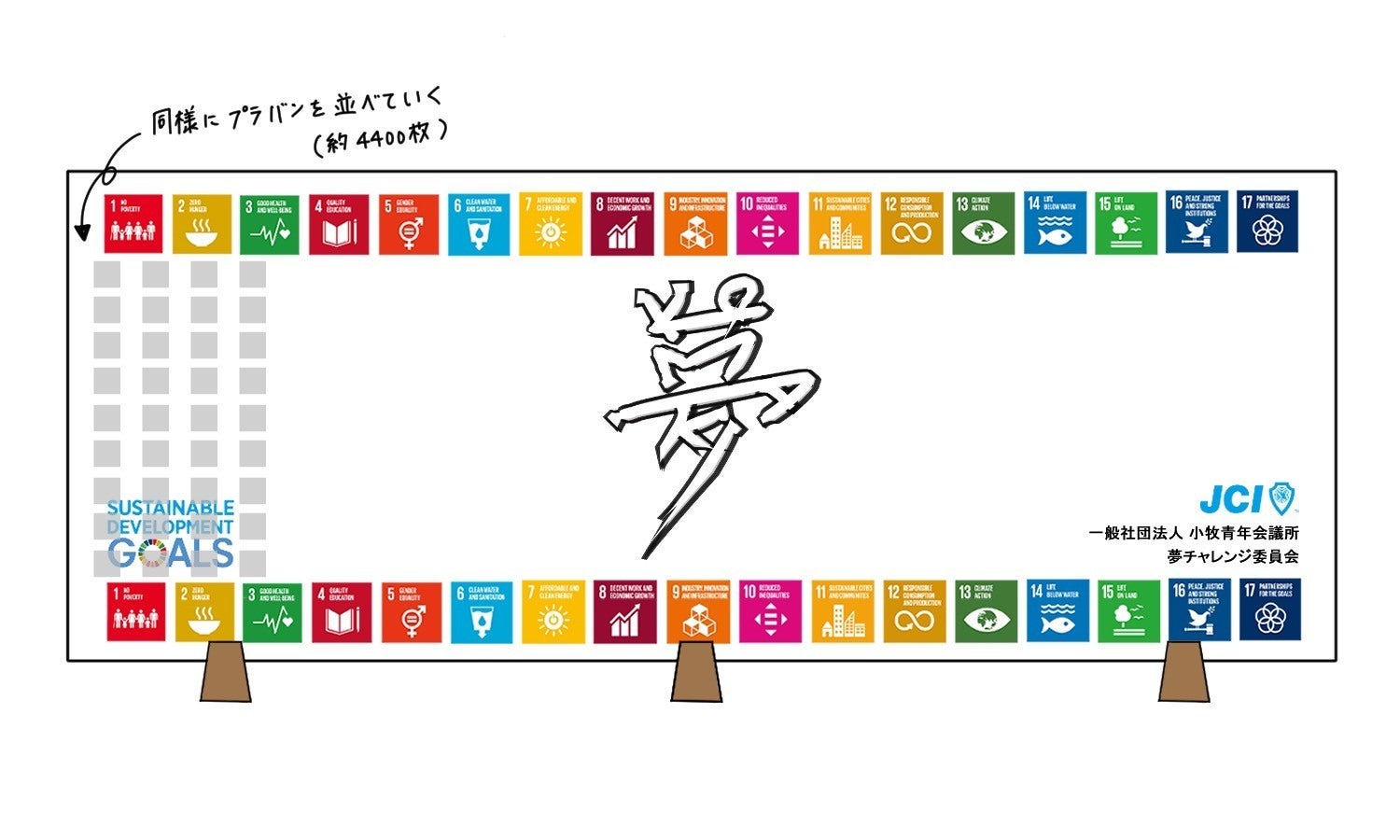私たちは、夢を持つ事によって希望ができ、叶える為の目標が明確になると考えました。夢がゴールではなく、夢を持つ事が全てのスタートになり、未来へ繋がる道になると確信し、誰もが夢を叶えられるまちの創造を目的に本プロジェクトを企画しました。