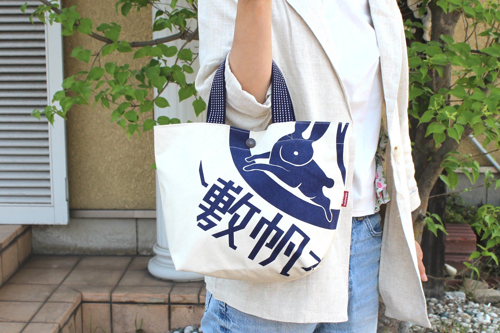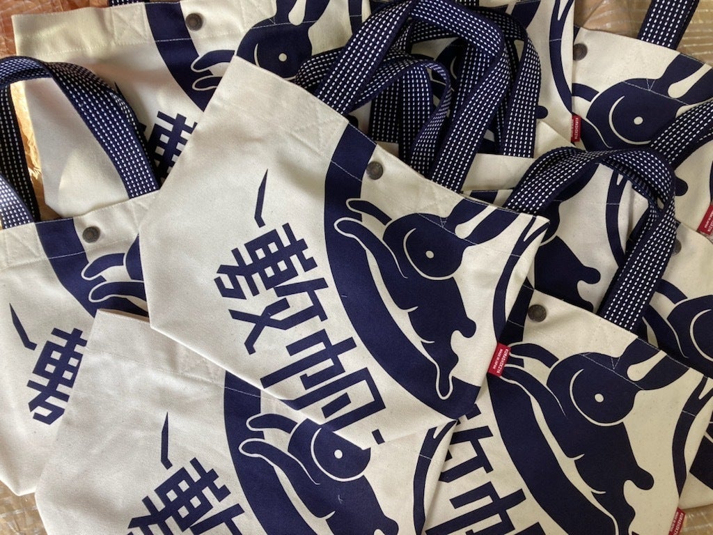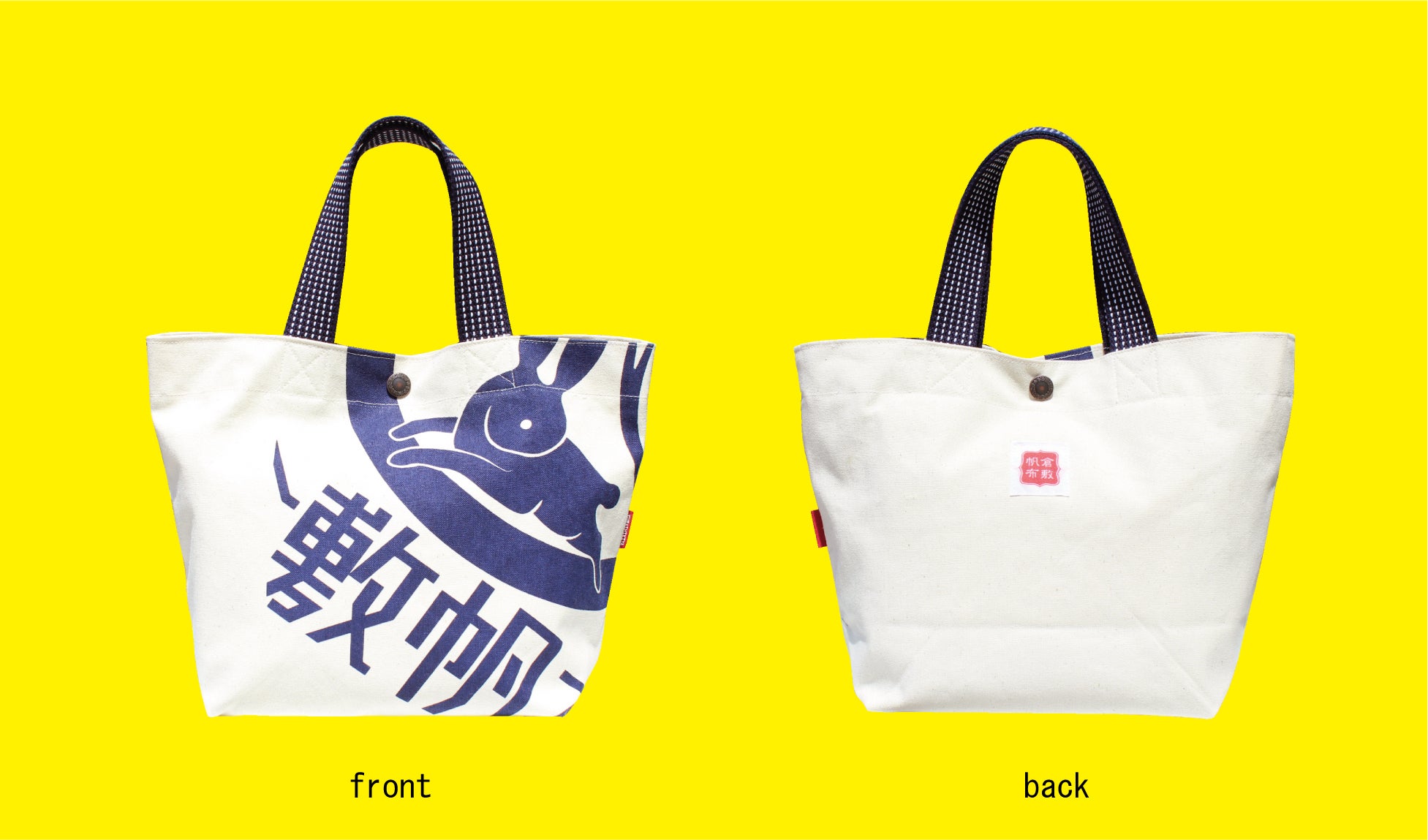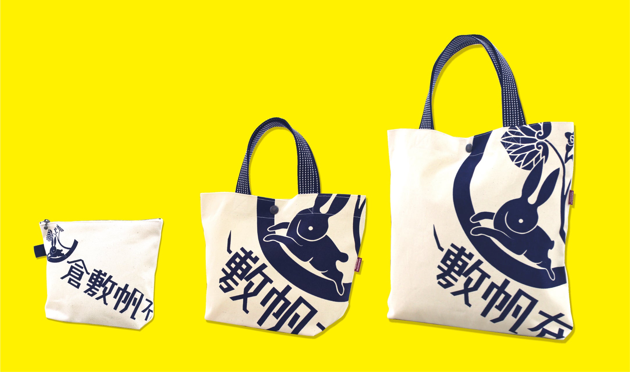 柄には、商標登録にも使用している『葵うさぎ』のマークと『倉敷帆布』の文字を