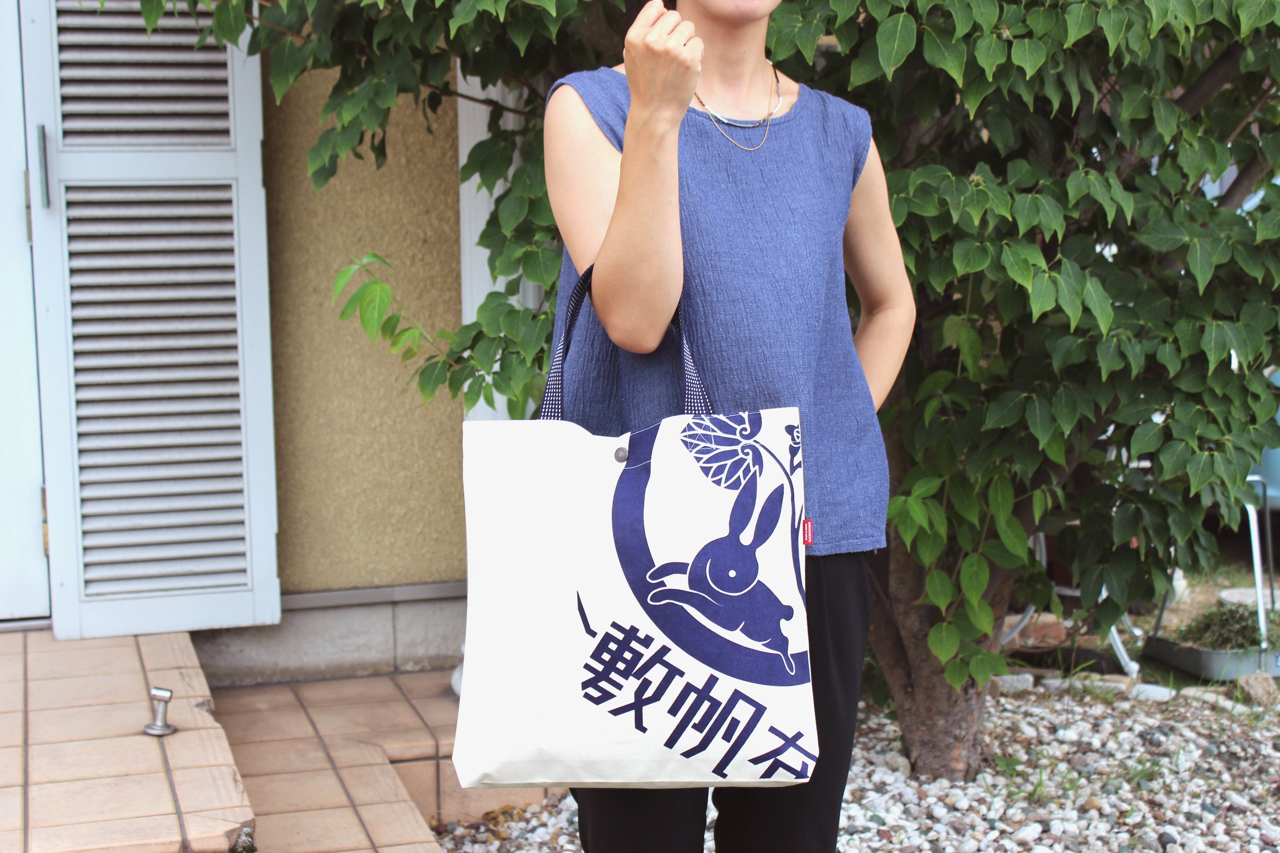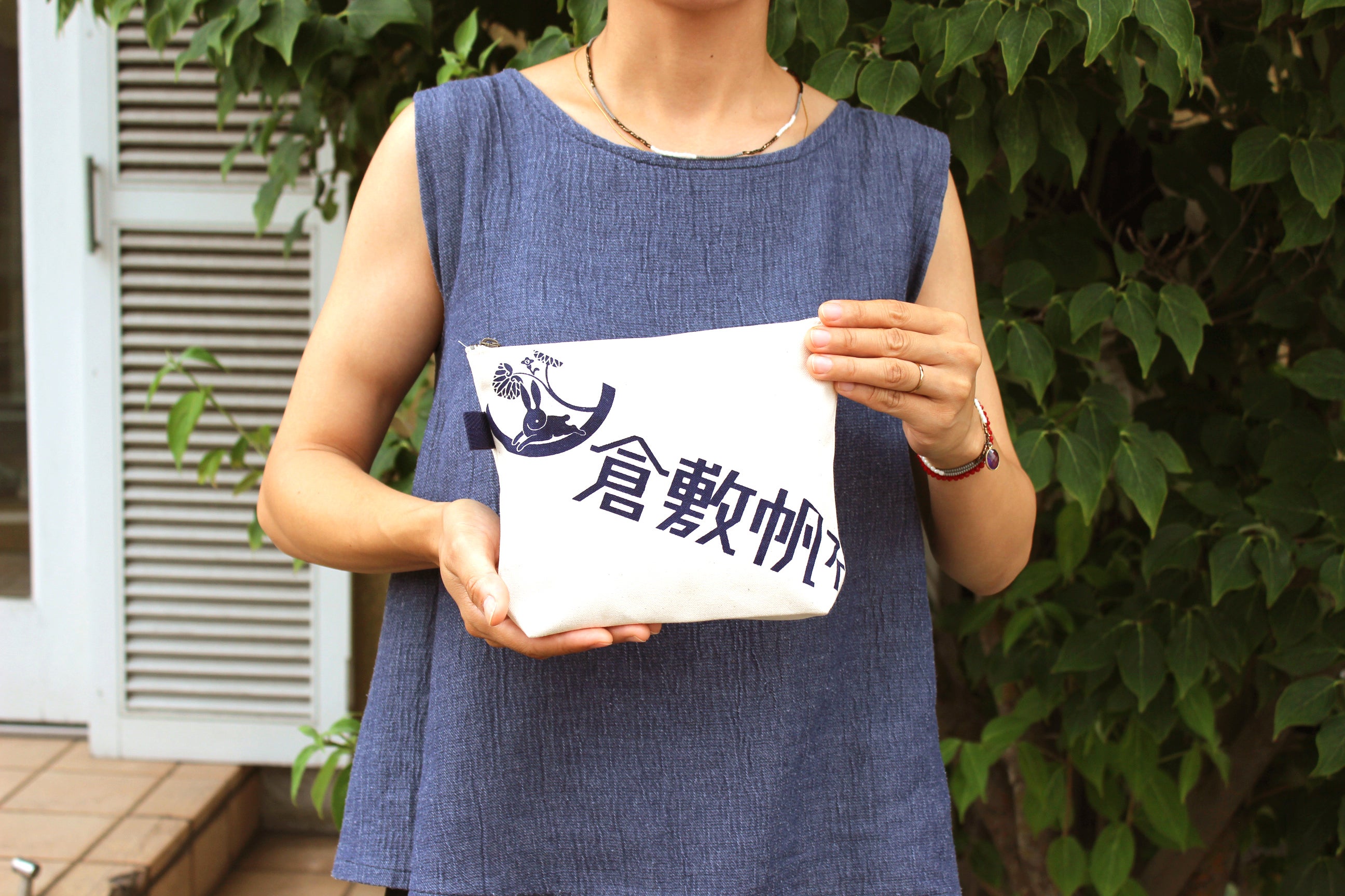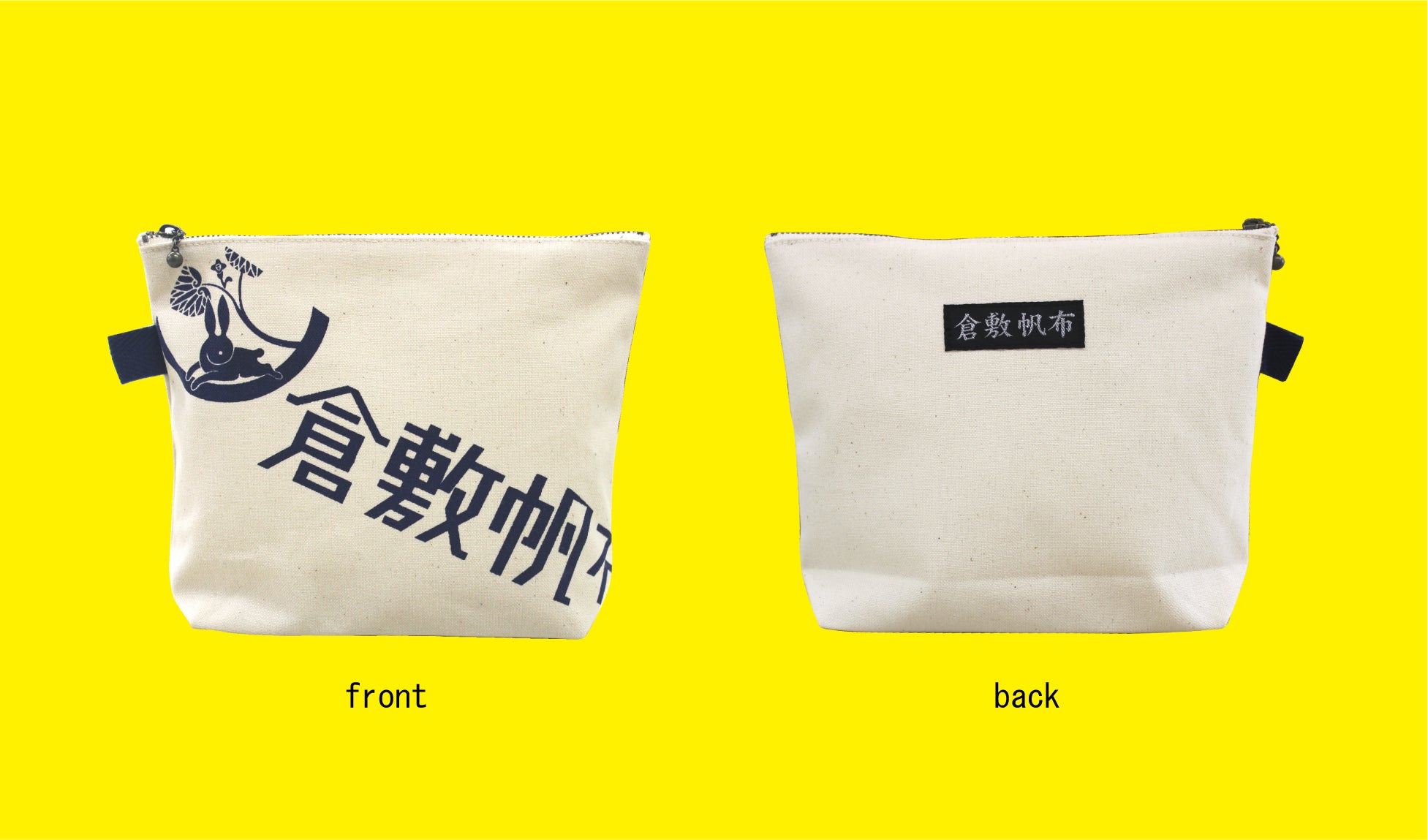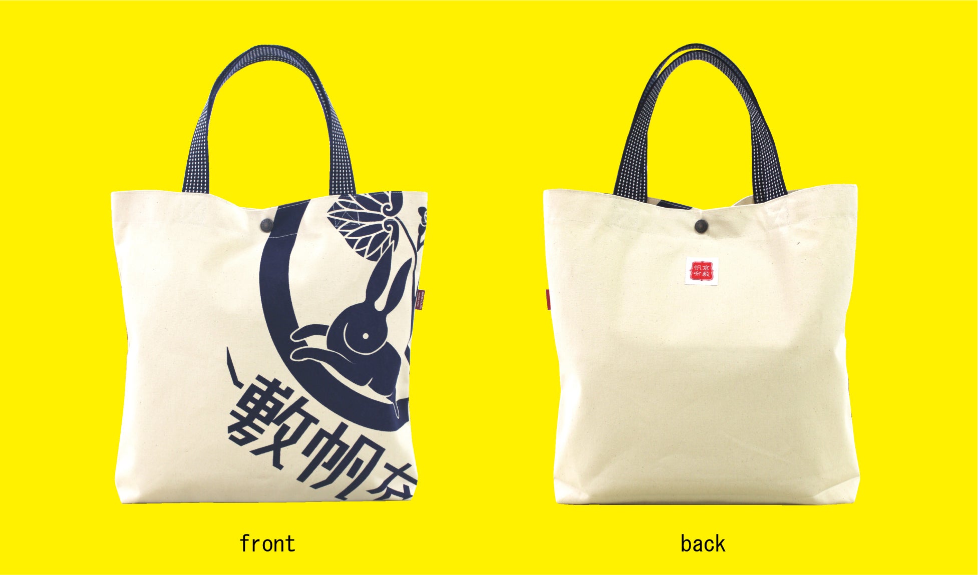 柄には、商標登録にも使用している『葵うさぎ』のマークと『倉敷帆布』の文字を