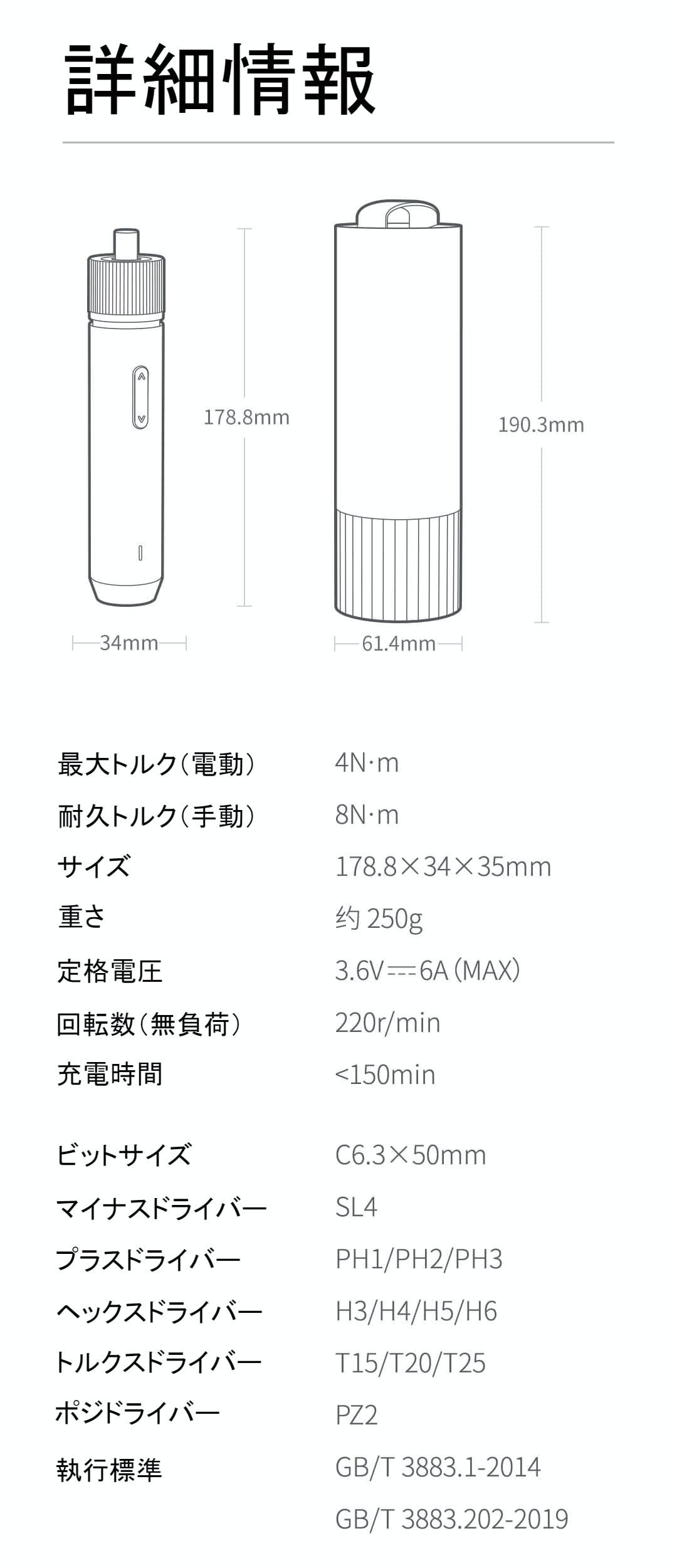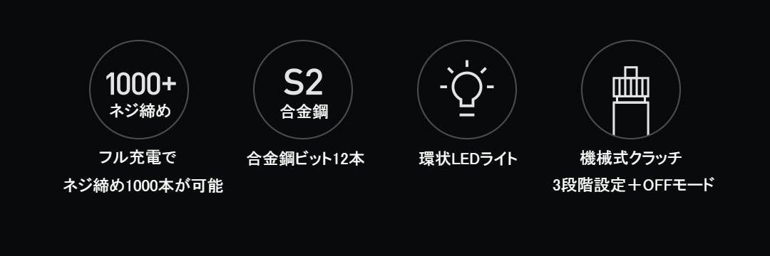 大容量の1500mAhリチウムバッテリーを使用しており、満電状態では約ネジ1000本を取り外し可能になります。