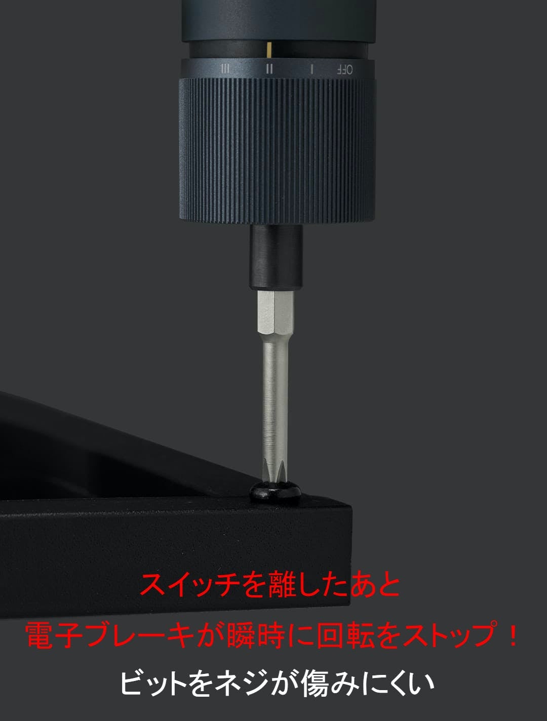 Ⅰ〜Ⅲまでの強さの目安が付いています。ネジや状況に合わせて調節でき、ネジ穴潰れを防ぎます。