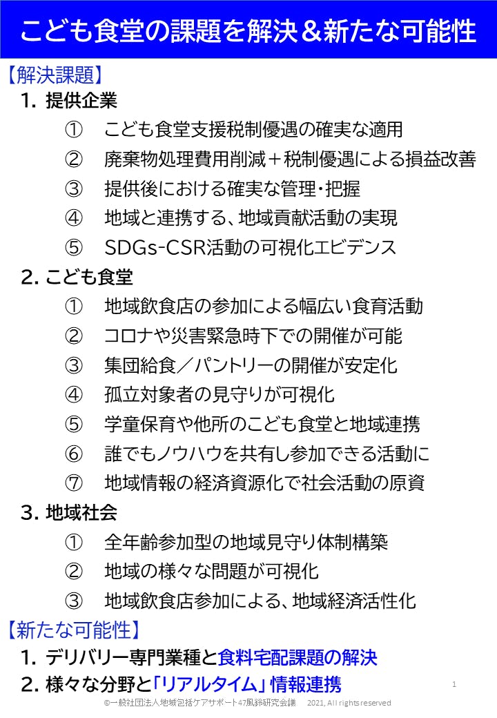 この活動は、現在のこども食堂の課題解決だけに終わりません。