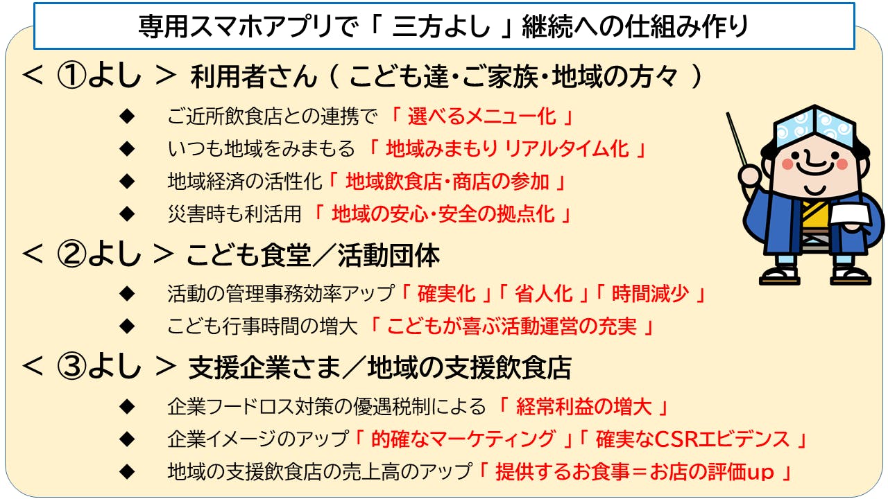 日本伝統「三方よし」によるこども食堂活動が始まります