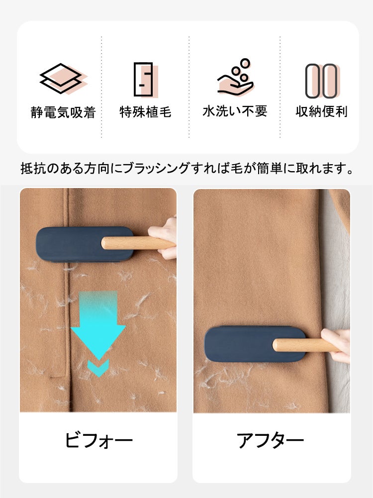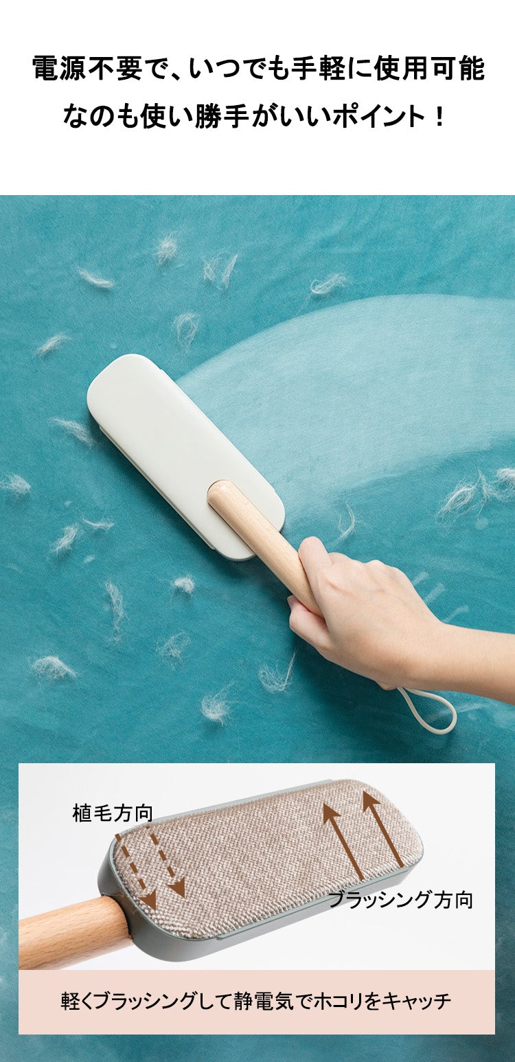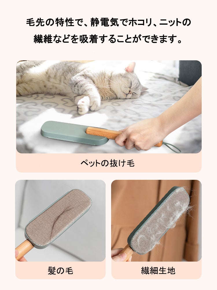 いくらおしゃれなアウターでもホコリや毛玉がついてますときれいな印象に見えないですね。敏感な素材のアウターでも優しくゴミやホコリを取ってくれます。バックの中に入れて持ち歩き可能です。気になる時にスッと出してお使いください。それに、カーペットに絡み付いたペットの抜け毛、部屋のペットの毛皮と糸くずを効率的に取り除きます。驚くほど簡単に取れるので使いやすいです。軽量で持ち運び便利です。ペット連れのお出かけ、旅行などにも活躍できるペット抜け毛取り クリーナーです。いつでも、どこでも、季節を問わず利用できる抜け毛掃除ブラシ、ハンディークリーナーになります。ペットの抜け毛に困っている方には特におすすめです。