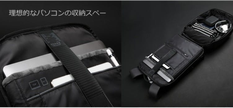 さらに抜群のガジェット収納力。15.6インチまでのPCと10.1インチまでのタブレット収納、スキミング対策済のシークレットポケット装備。さらにペットボトル収納が可能な外部サイドポケットまでついています。