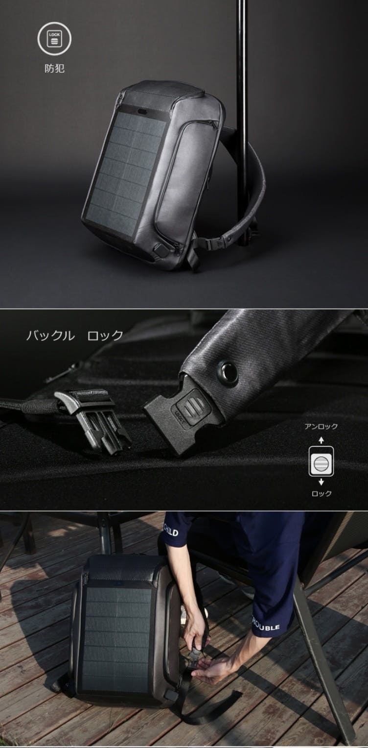 これで防水にソーラーパネル付き、こんなバックパックが他にあったでしょうか。