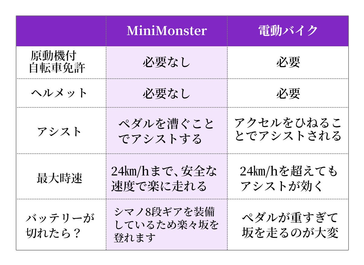 MINI MONSTERはアシスト比率については道交法基準内であります。