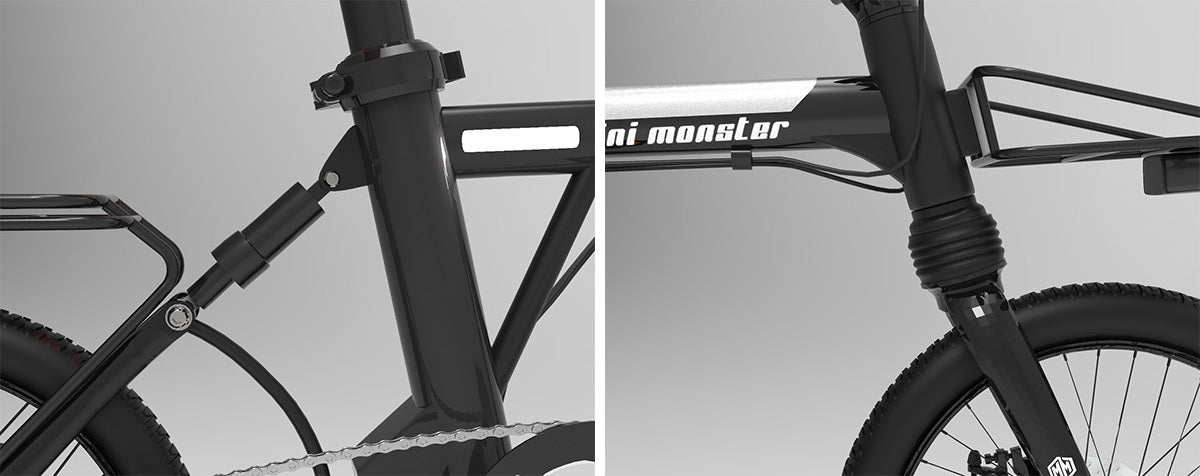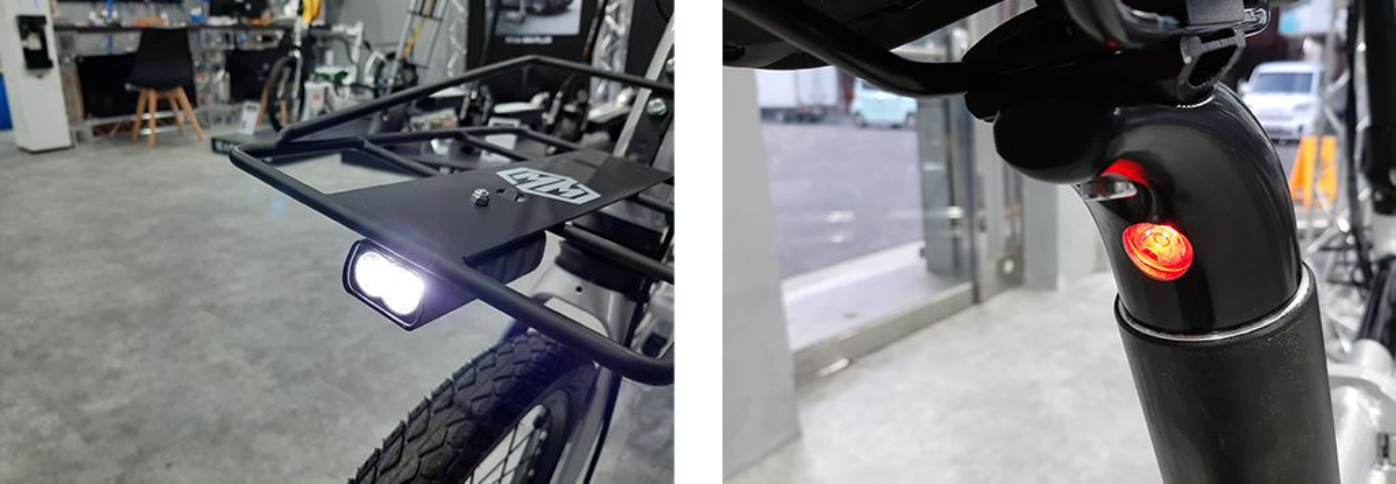 MINIMONSTERは本来の電動アシスト自転車よりも遠くより楽に走れるというコンセプトを目標に開発されました!どうすればバッテリーの減りを少なくさせより遠く走れることができるかを徹底的に追求したどり着いたのがこのMINIMONSTERです! 独自の開発を通じて36V14AHのバッテリーを装着し一度のフル充電で130KMが走行可能な電動アシスト自転車を作り上げることができました。 それに加えお客様に、より快適な乗り心地を体感していただくため自転車の前後にサスペンション(衝撃吸収装置)を装着して長時間でも快適に走行できることを可能にしました。 自転車事故防止の安全対策もばっちりです!本来自転車には前後にしかライトがついていません。 前方リアライト 後方テールランプ ですがMINIMONSTERは安全面も重視しサドル下の左右にもLEDライトを装着しました! 前後にしかライトがついていない自転車は左右からくる歩行者、自転車、バイク、車から見えにくく、それで事故を起こすケースが沢山あります… それでは自転車の左右に明るいライトがついていたらどうでしょうか?