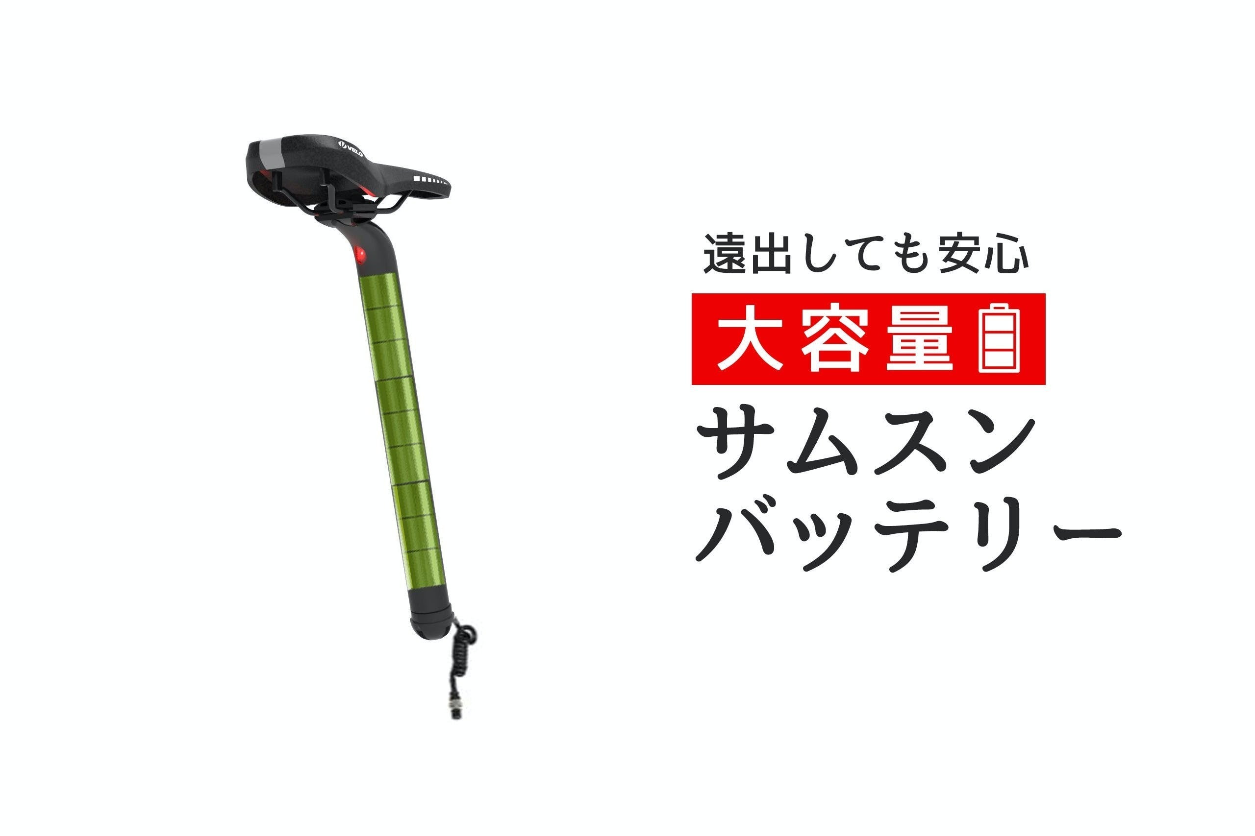 さらにサドル本体がバッテリーになっていますのでまわりからは見えず普通の自転車にしか見えません!