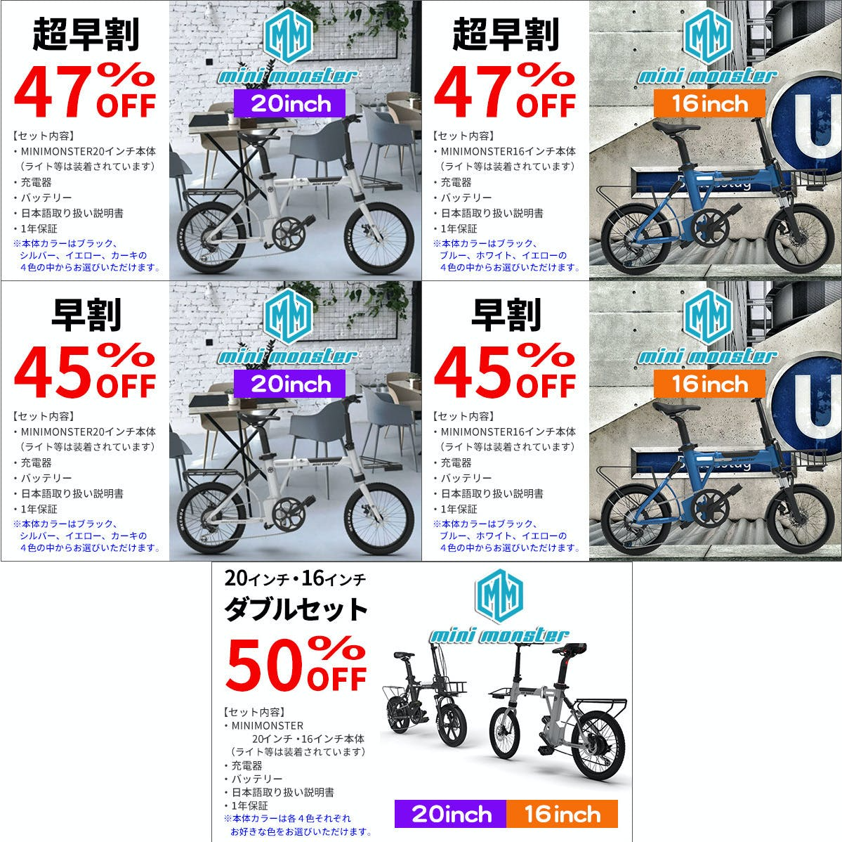 安心の折りたたみ可能電動アシスト自転車MINIMONSTER 「電動バイクに乗りたいけど免許が必要だから乗れない…」 「バッテリーが切れたらペダルが重くてとてもつらい…」 そんなお客様の声に耳を傾け免許不要、バッテリーが切れた場合でも8段ギアを搭載しているため安心!坂道でも軽々走れる電動アシスト自転車です!