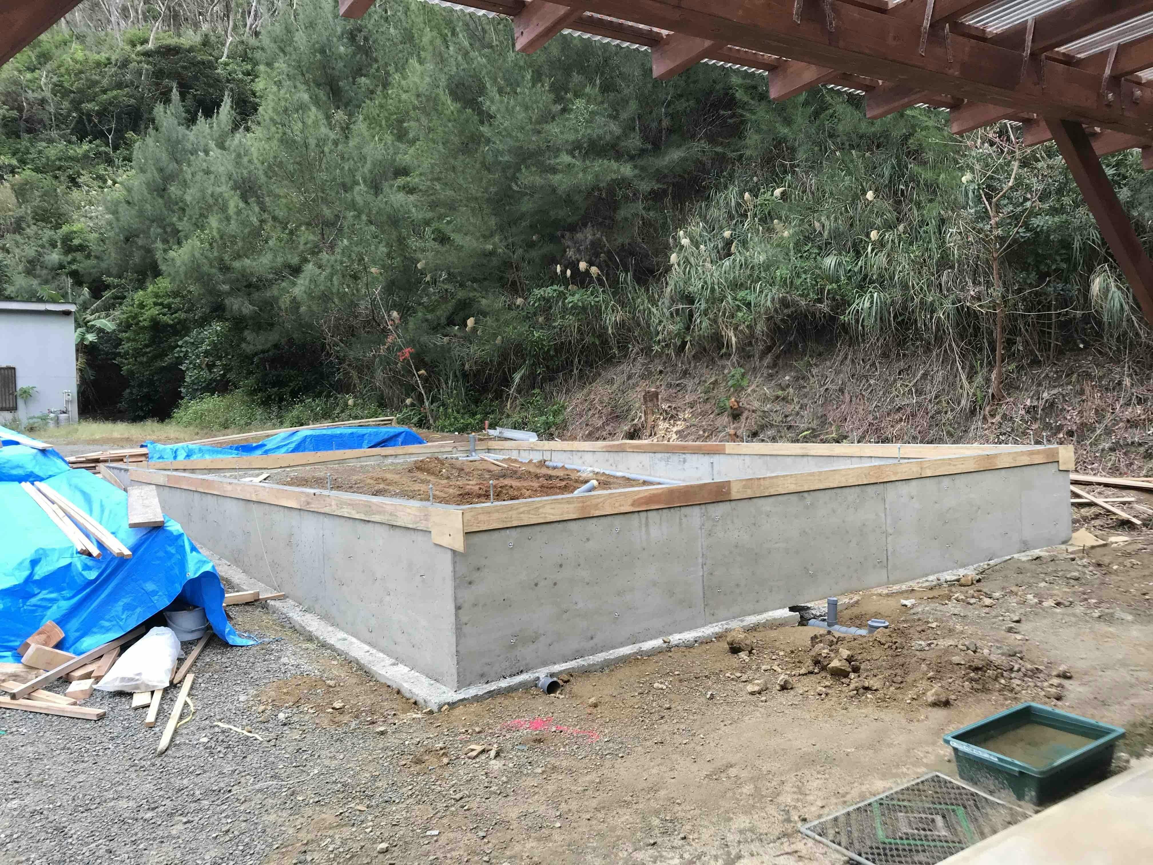 何もなかった空き地にやっとこさ基礎ができあがったところです。