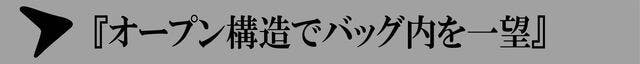 そして、敢えて横のマチ部分を除くことでファスナーを開いた時、バッグがフルオープンになり、バッグ内を一望できます。