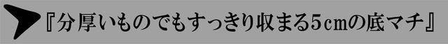 この5cmのマチのおかげで分厚いものでもすっきり収まります。