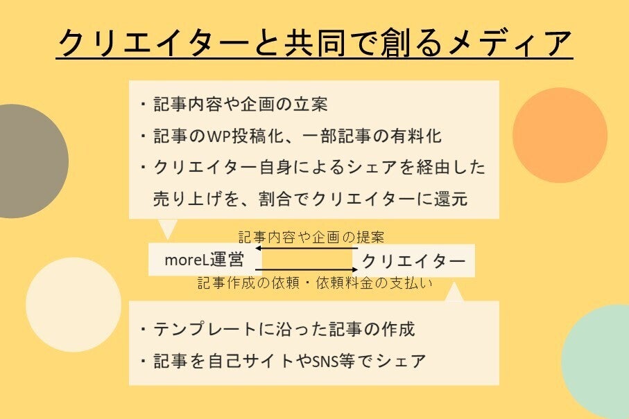 上述の通り、moreLは記事の寄稿をイラストを始めとしたクリエイティブな制作を手がけるクリエイターの皆様にお願いします。なるべく沢山のクリエイターの皆様に寄稿をしていただくため、また良質な記事・企画を継続的に掲載していくために、一部の記事を有料としつつ、無料でも十分に創造力を広げる学びを得られるメディアにしていきます。