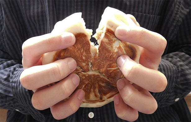 プレスして焼く「チルドの肉まん」 !「ピザまん」や「あんまん」も焼いてみよう。