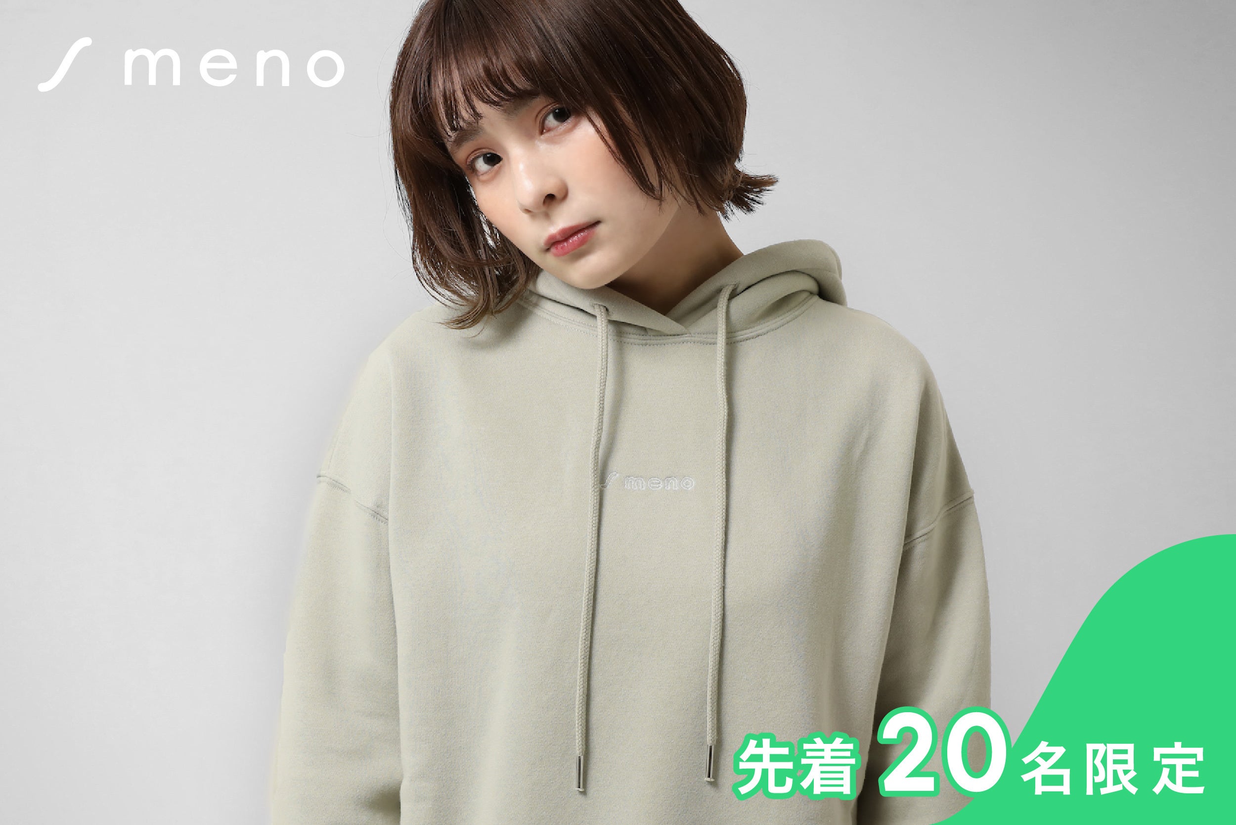 menoのリリースを記念して、はじまりのきっかけを纏う「meno ロゴ刺繍 Mint Hoodie」を先着20名限定でお届けします。男女ともに着られるオーバーサイズです。サイズは以下を参照ください。