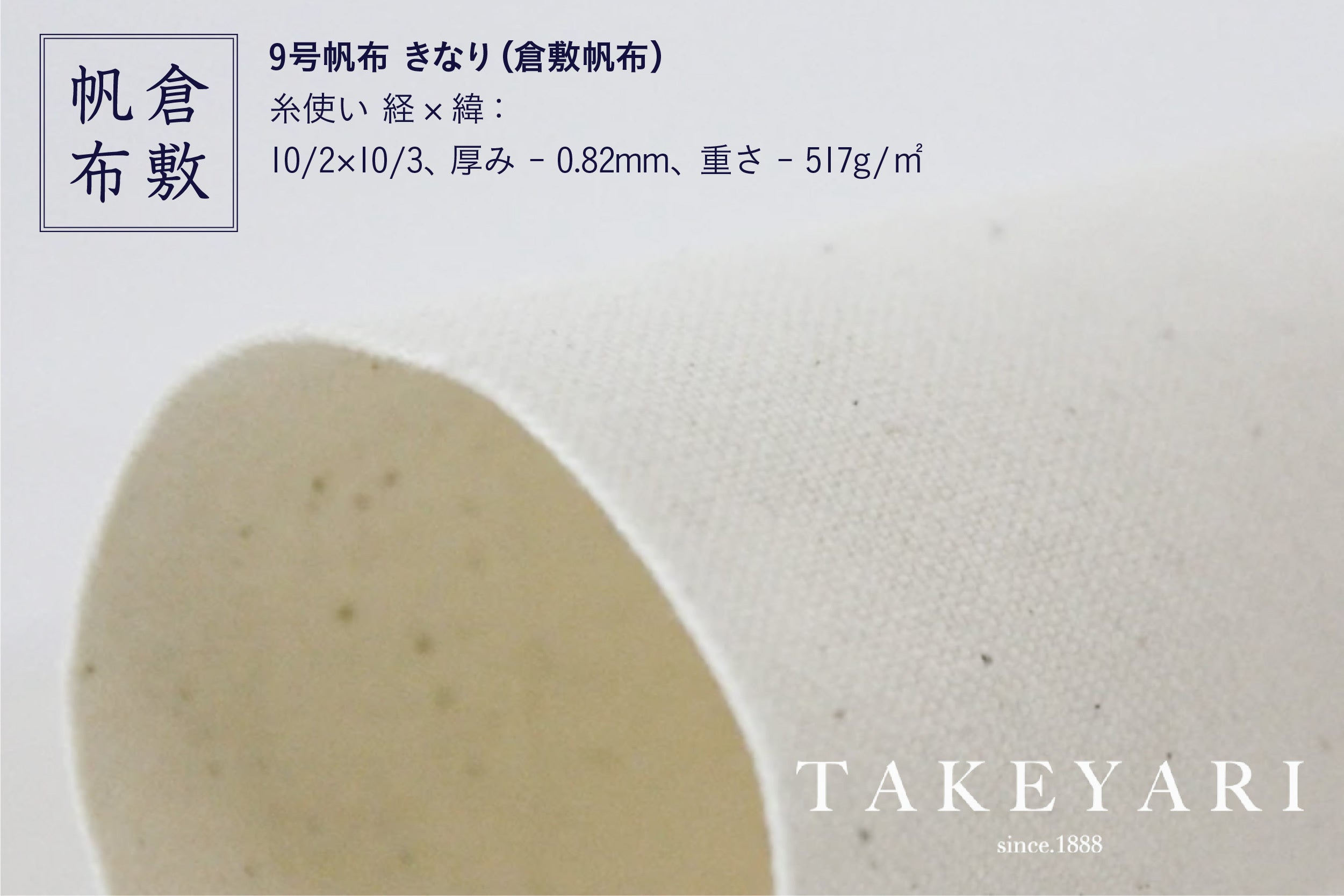 【綿帆布9号】糸使い 経×緯:10/2×10/3、厚み - 0.82mm、重さ - 517g/㎡