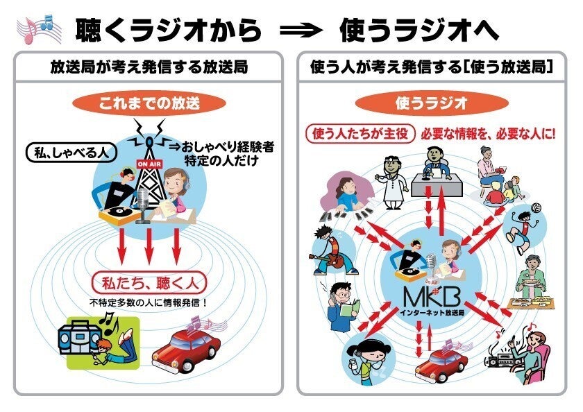 MKB とは、Meets(出会う)・Knowledge(知恵・知識・知見)・Broadcasting(放送局)の頭文字。MKBラジオからの情報を有効活用し、地域の住民が、住民同士や企業や自治体との連携を深めてもらえたらと願っています。