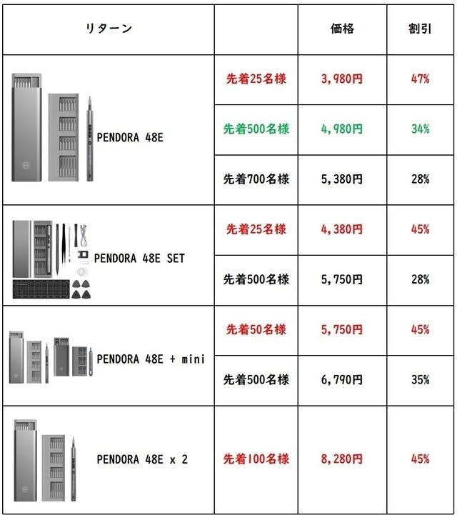 キャンペーン:https://www.makuake.com/project/pendora48e/