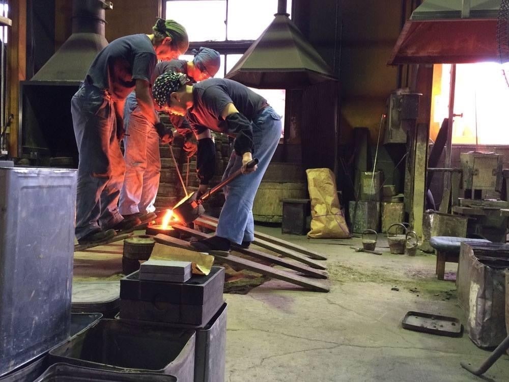 今回は、弊社工房で行われている南部鉄瓶の製作工程のうち、ハイライトとも言える"鋳込み"をご紹介いたします(お手数ですが、下記URLをご参照ください...(・ω・`))。