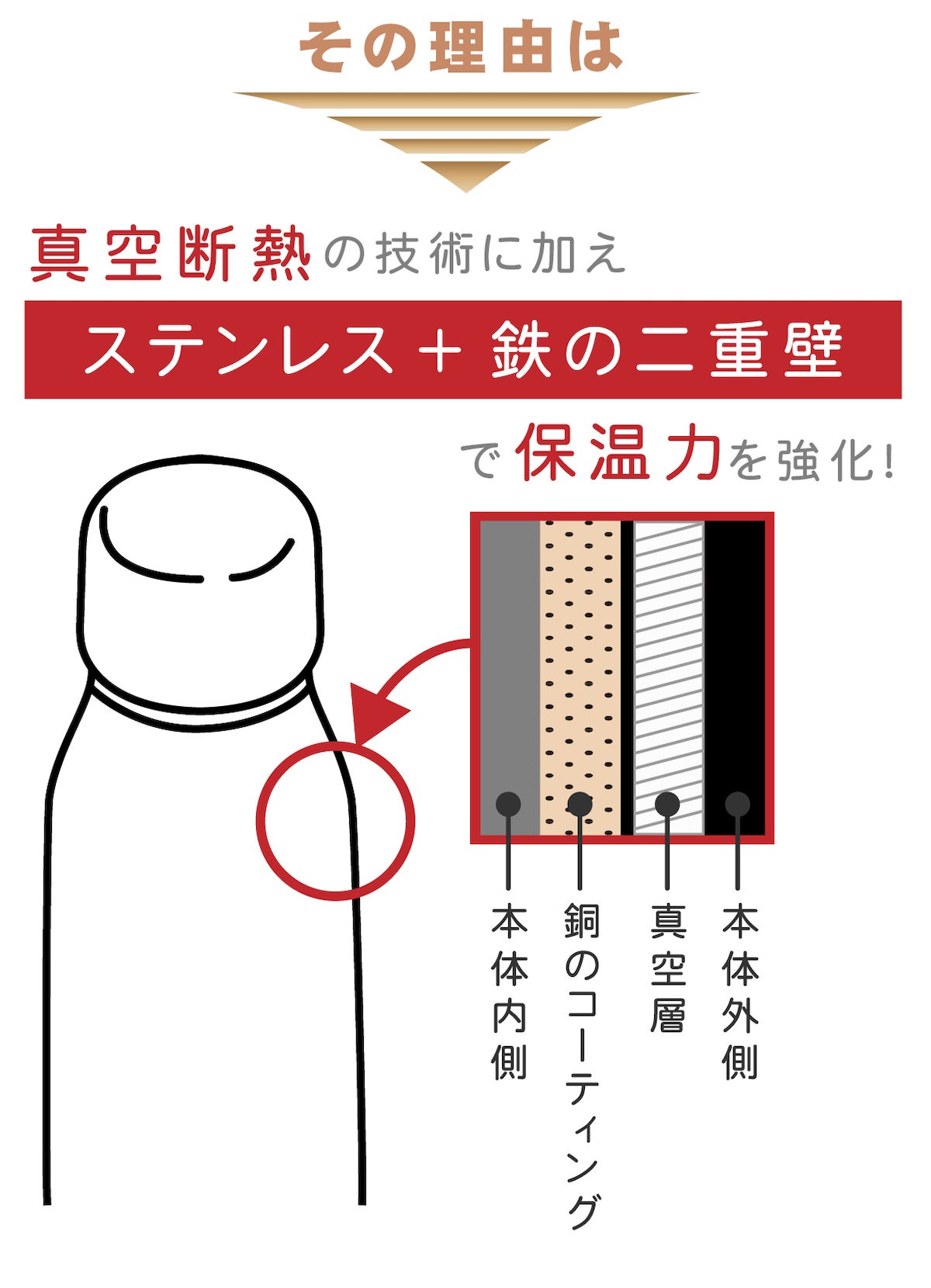 【2】二重のステンレス製サーマルボトルを採用。いつでも飲み頃をキープ