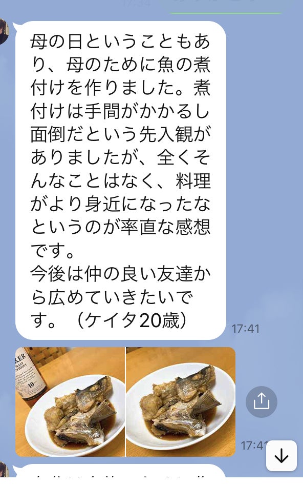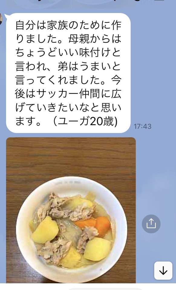 皆さまのご支援のおがげで、このように自炊ができる若い世代が確実に増えております。