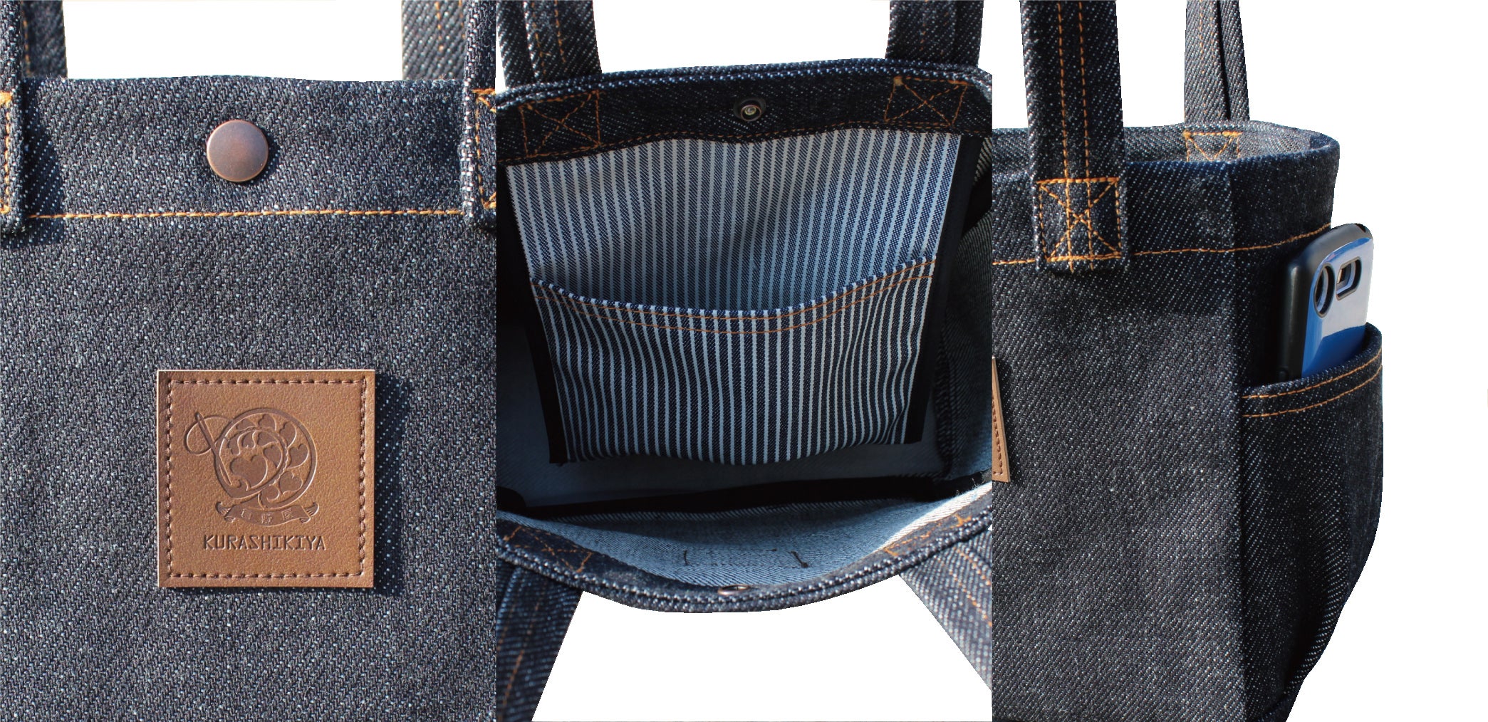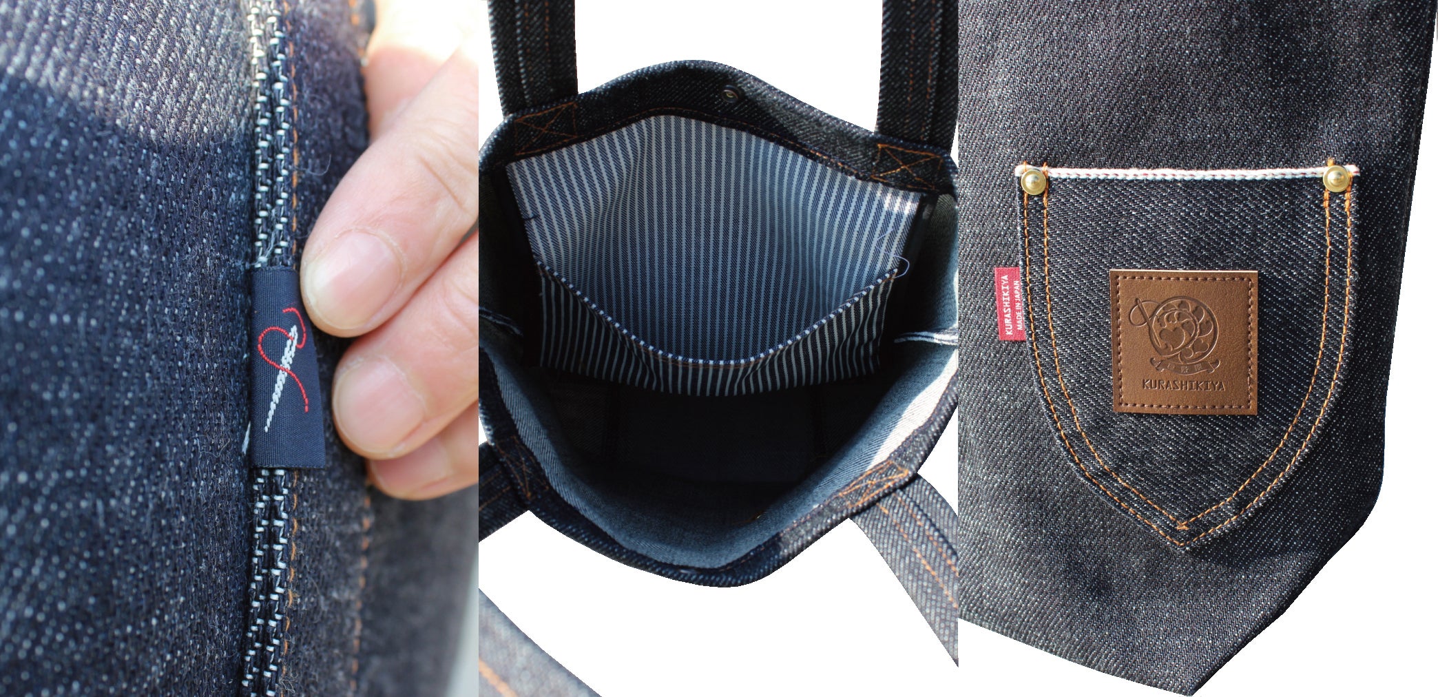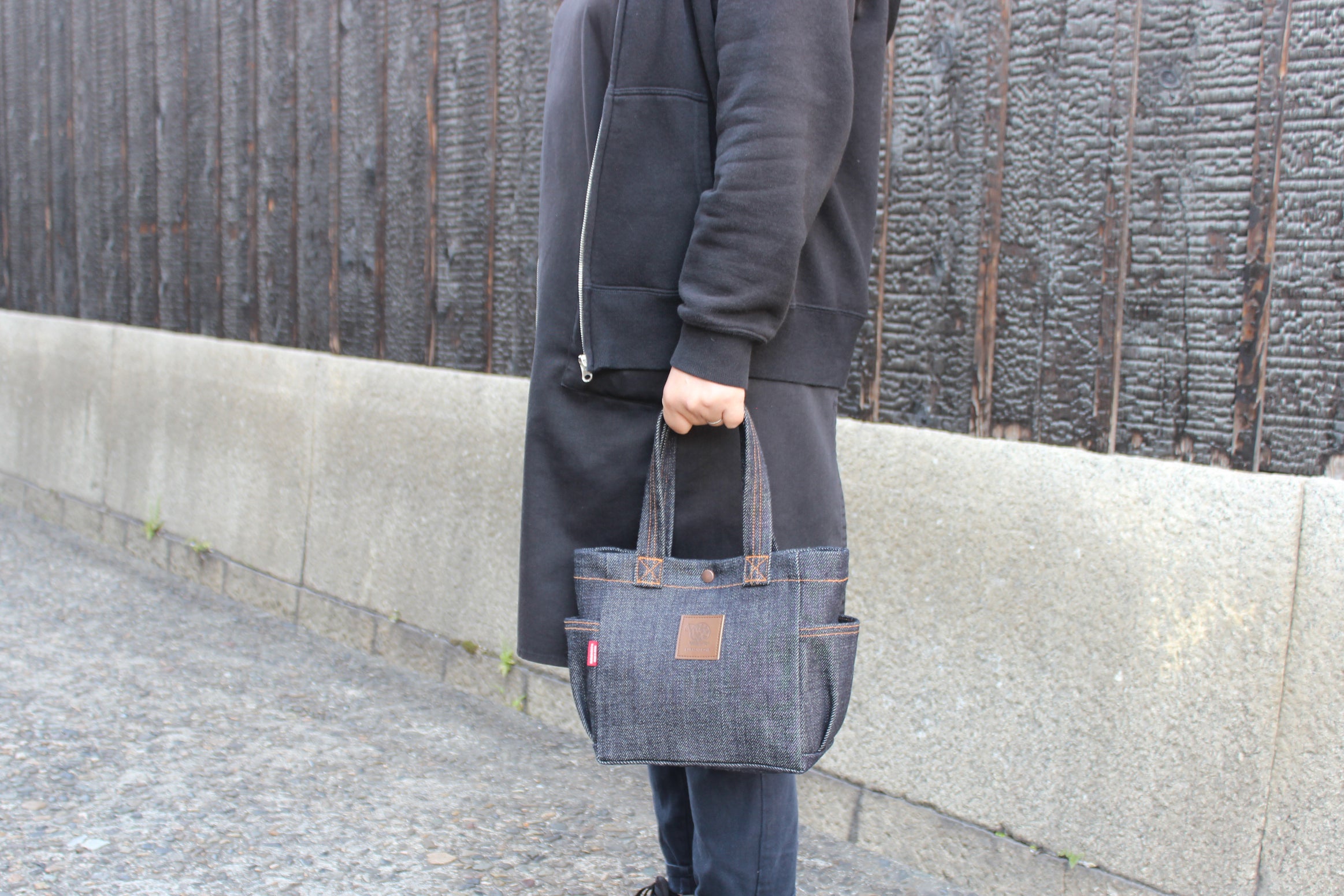 売っていない物、誰も持っていない物、定番と言うよりは希少性のある物、且つ個性あるヘビーウェイトのデニム生地を活かした、立つデニムバックを作ろうと思い立ちスタートしました。