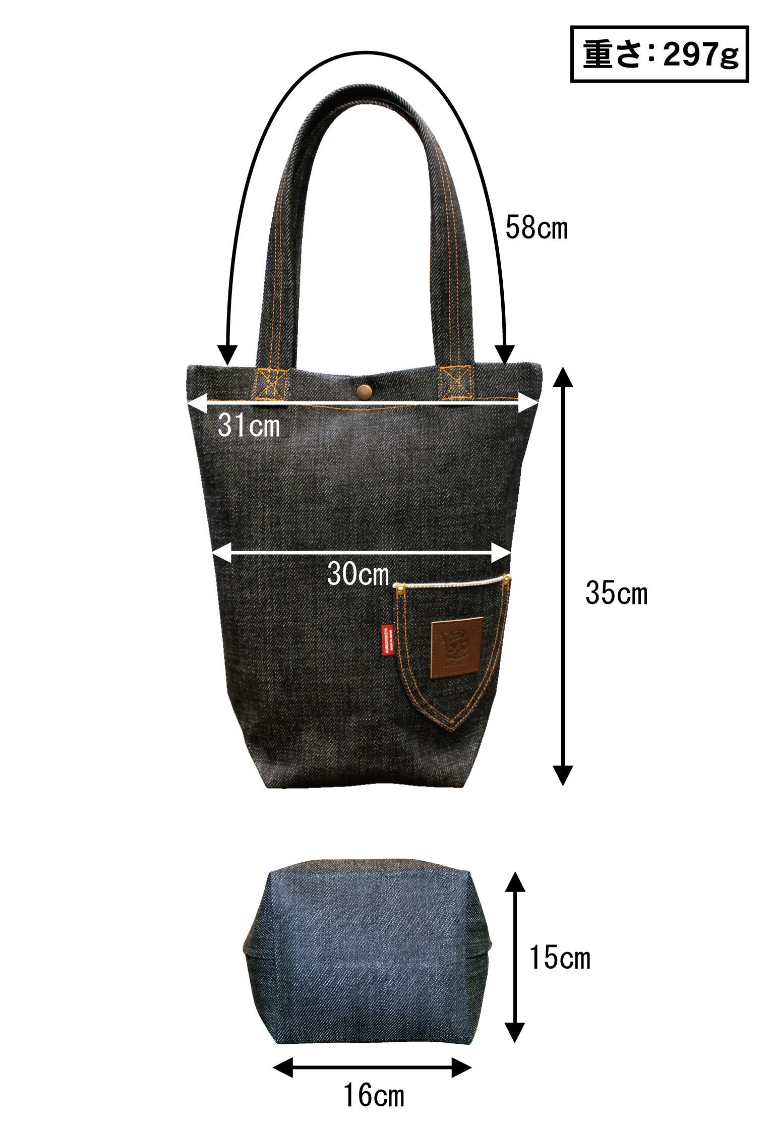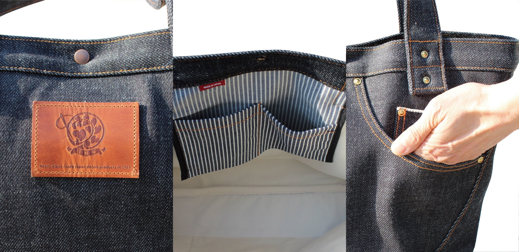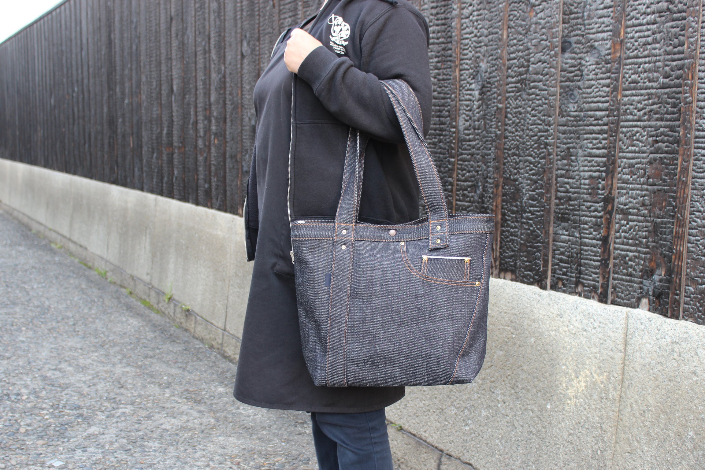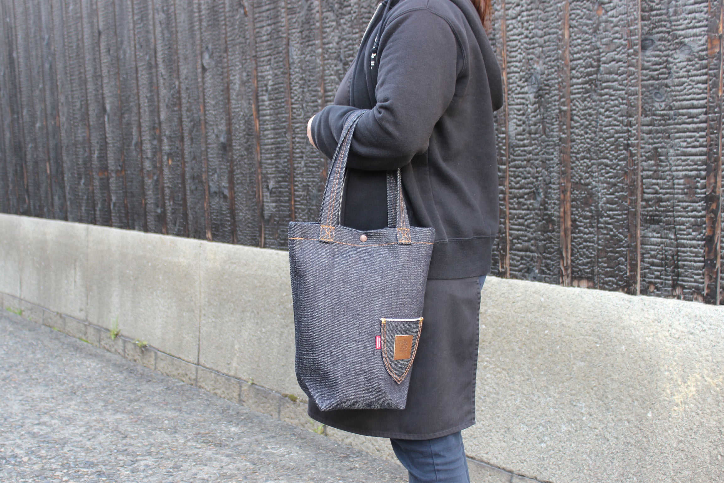 売っていない物、誰も持っていない物、定番と言うよりは希少性のある物、且つ個性あるヘビーウェイトのデニム生地を活かした、立つデニムバックを作ろうと思い立ちスタートしました。