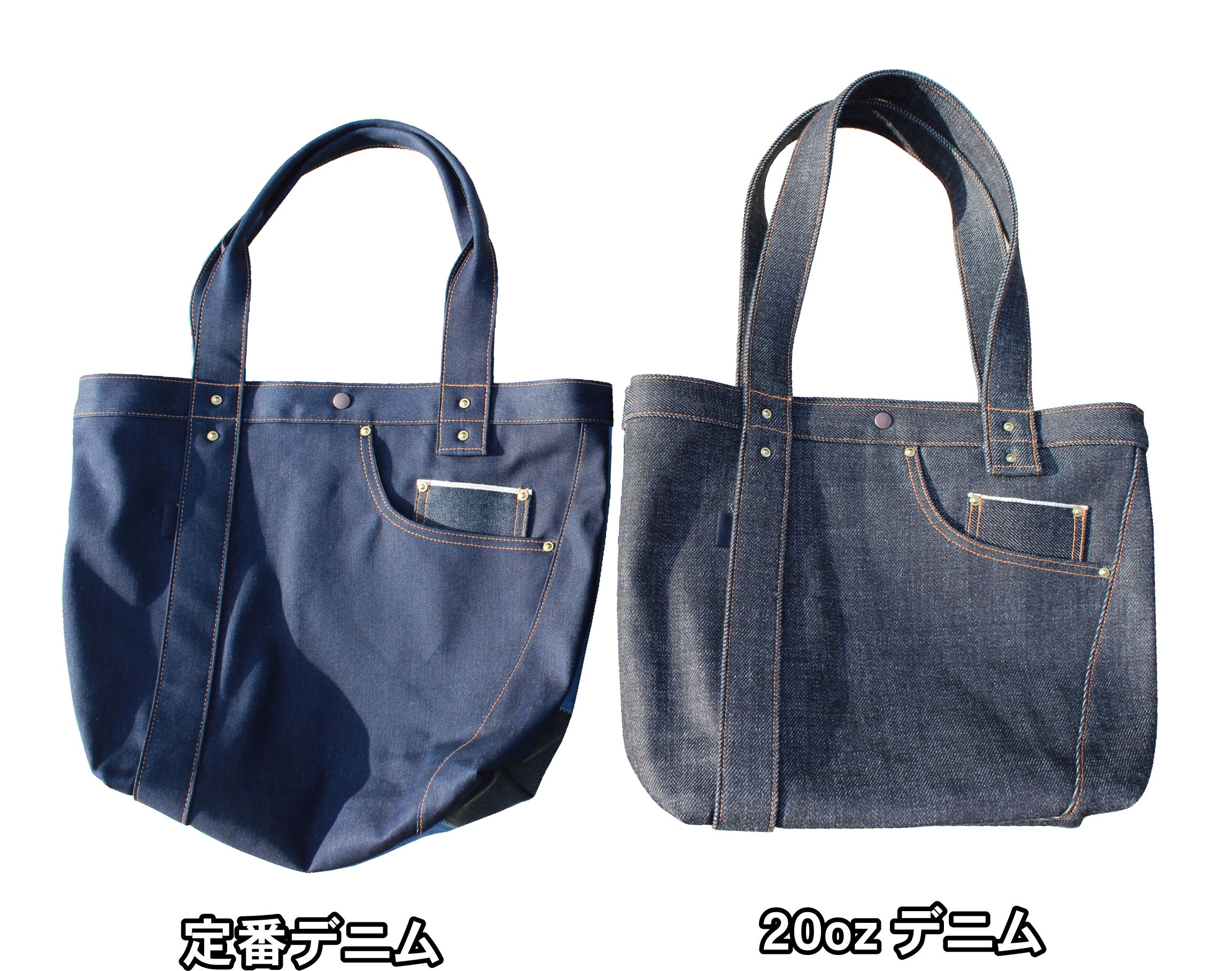 【定番デニムと20ozデニムで作ったバッグの比較】