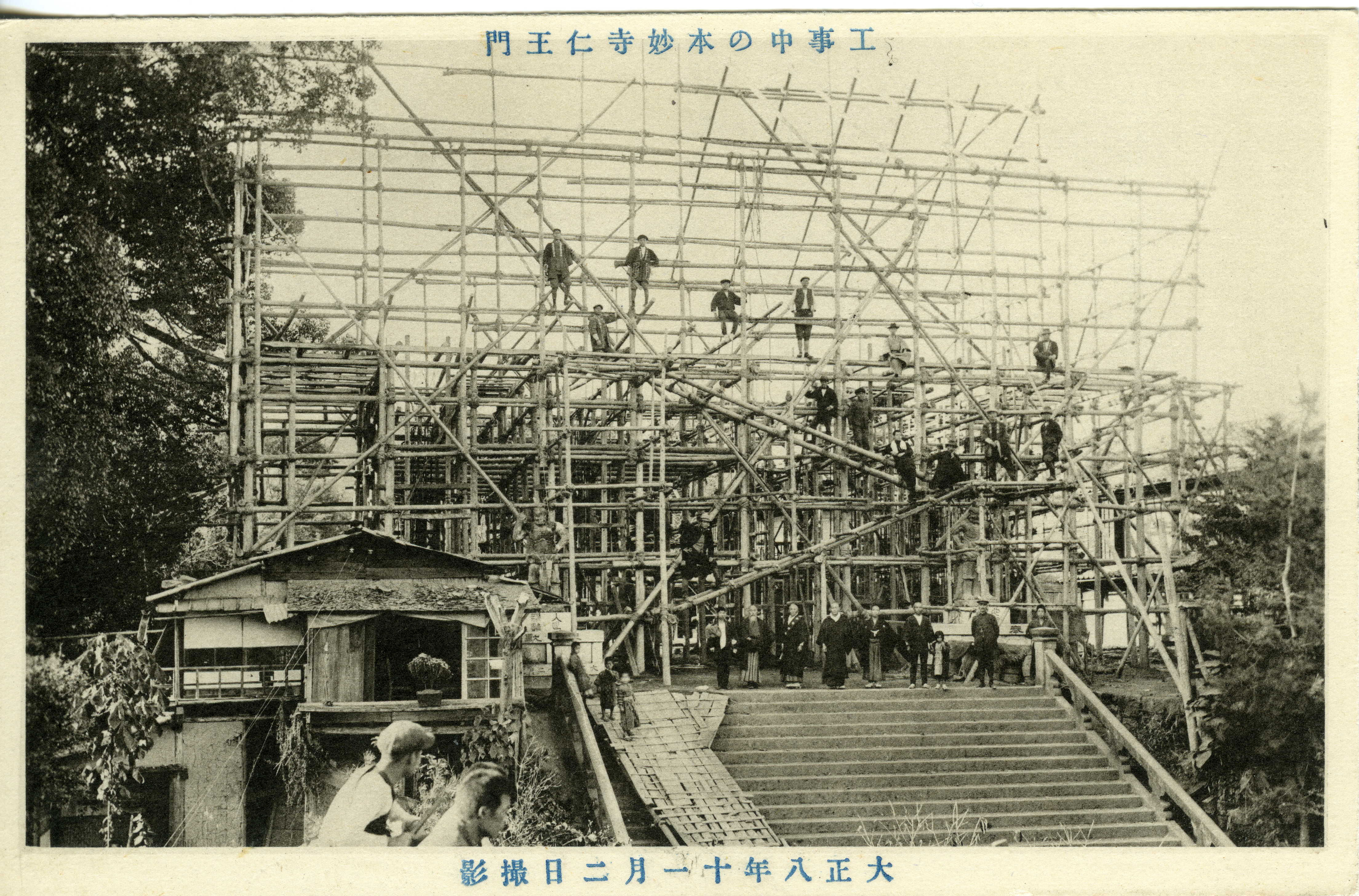 当時の最先端建築技術で建てる仁王門に携わった人たちが誇らしげに写真に納まる姿が素晴らしい。